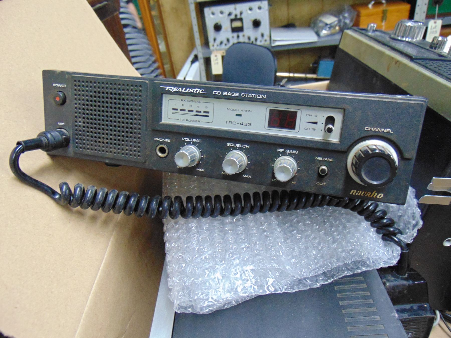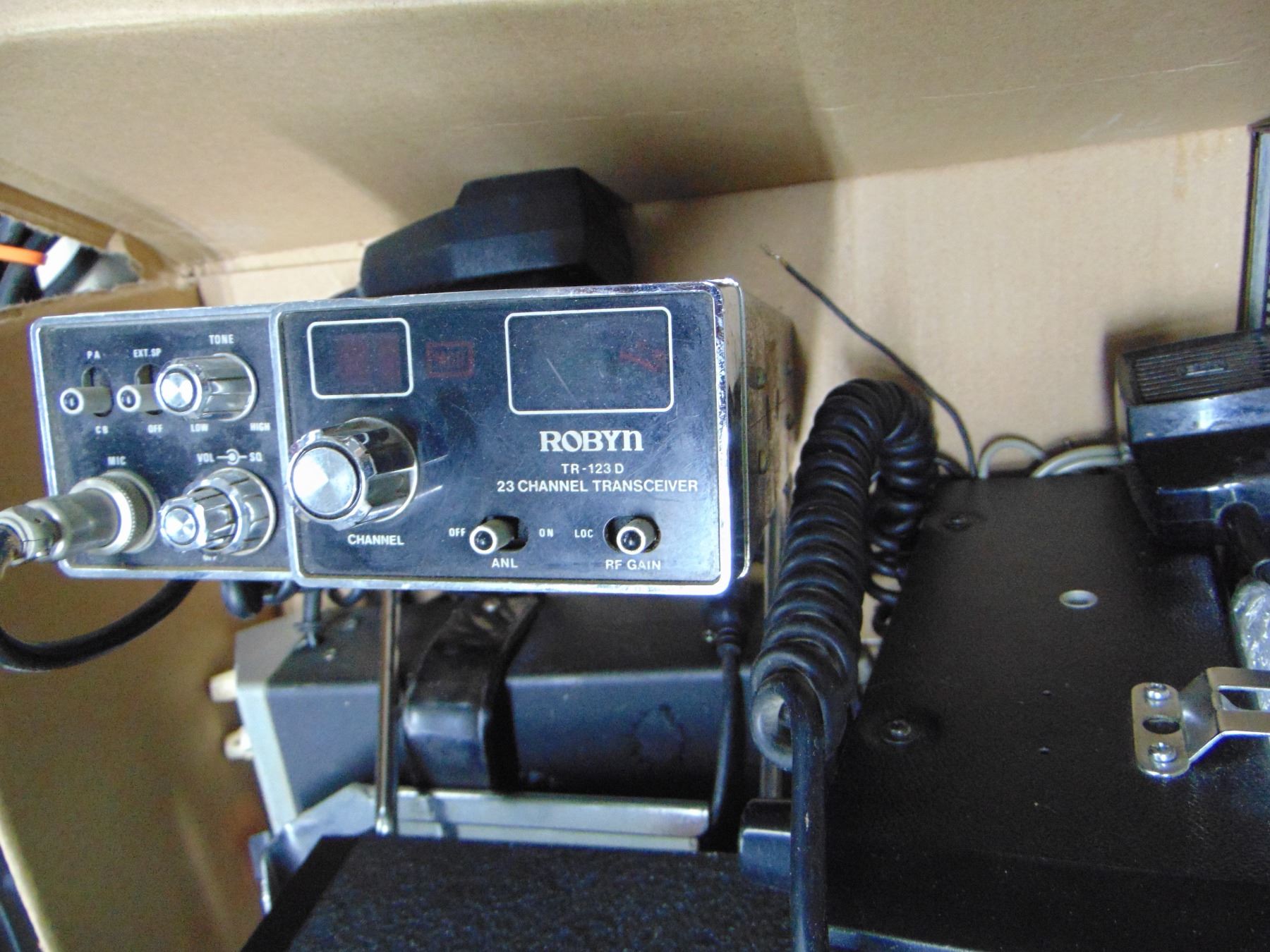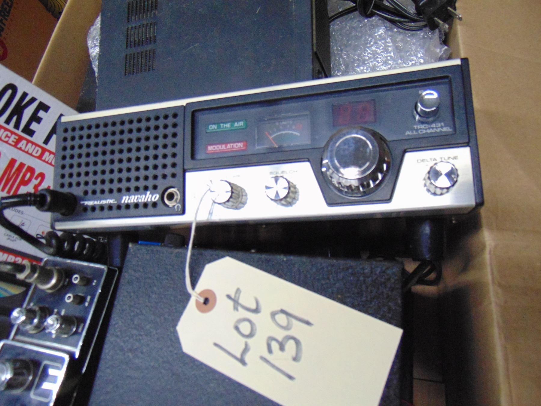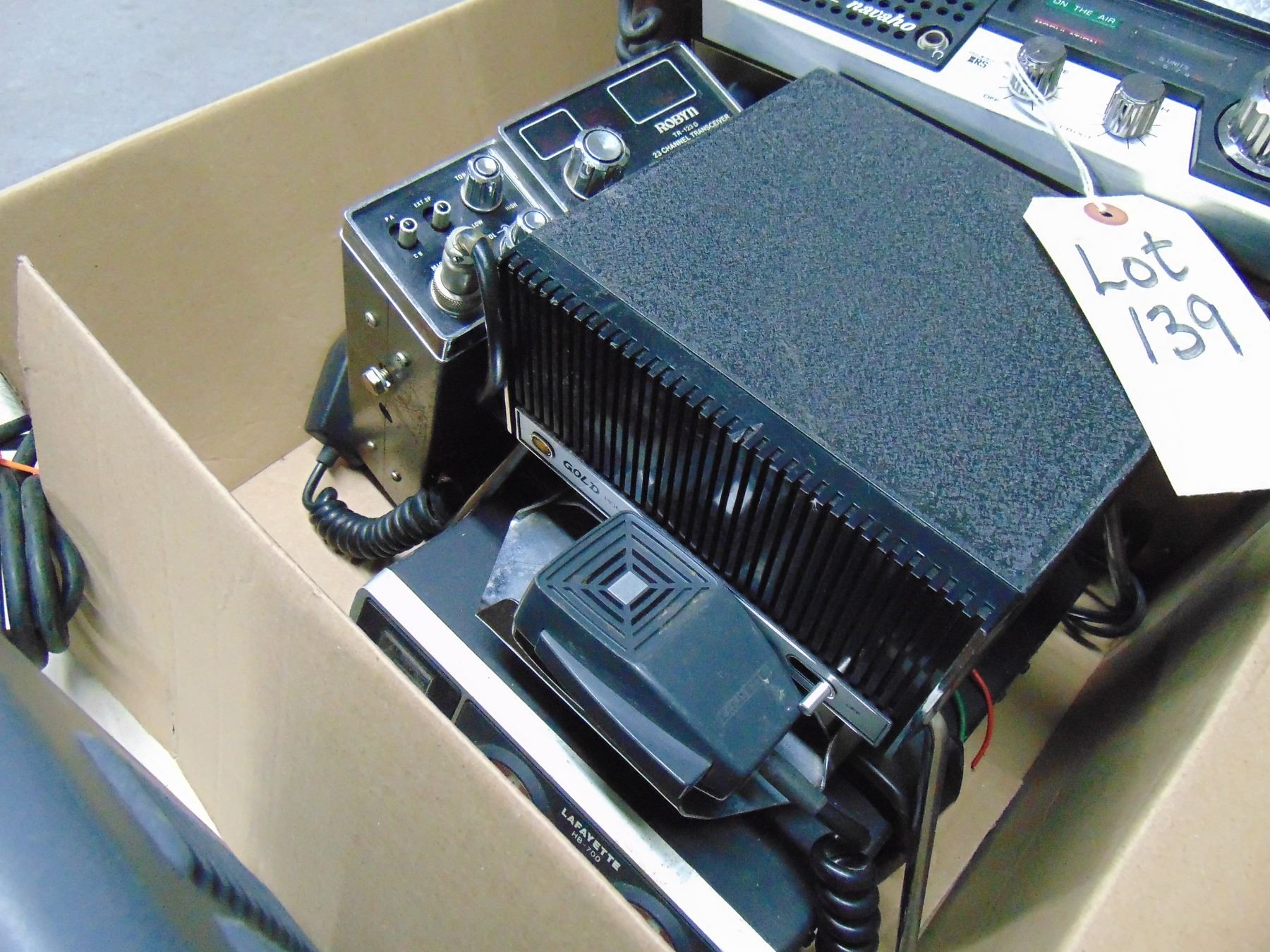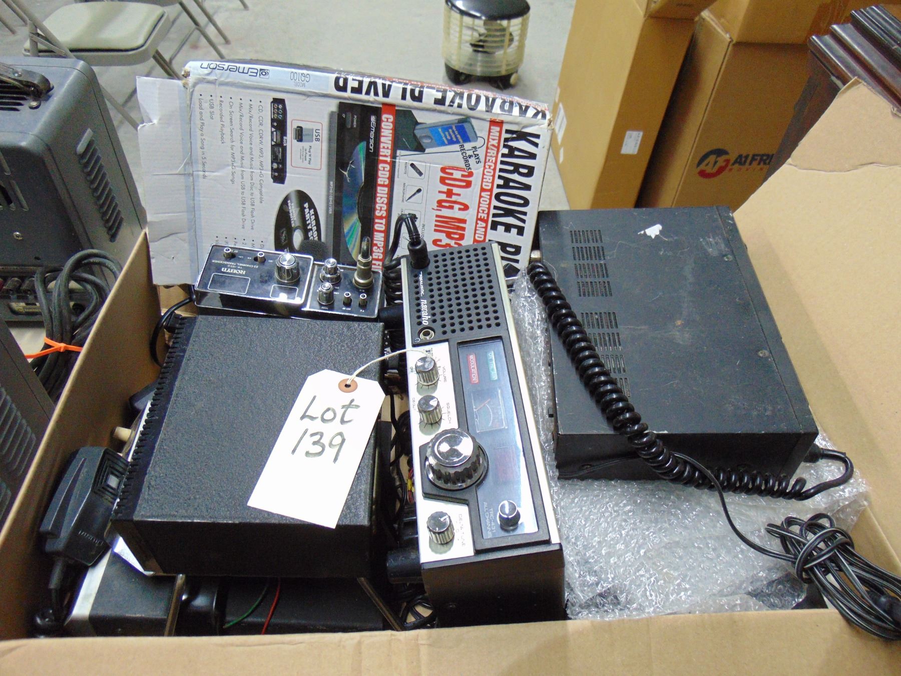 Box of 4 CB base units, Technics cassette player, karaoke player