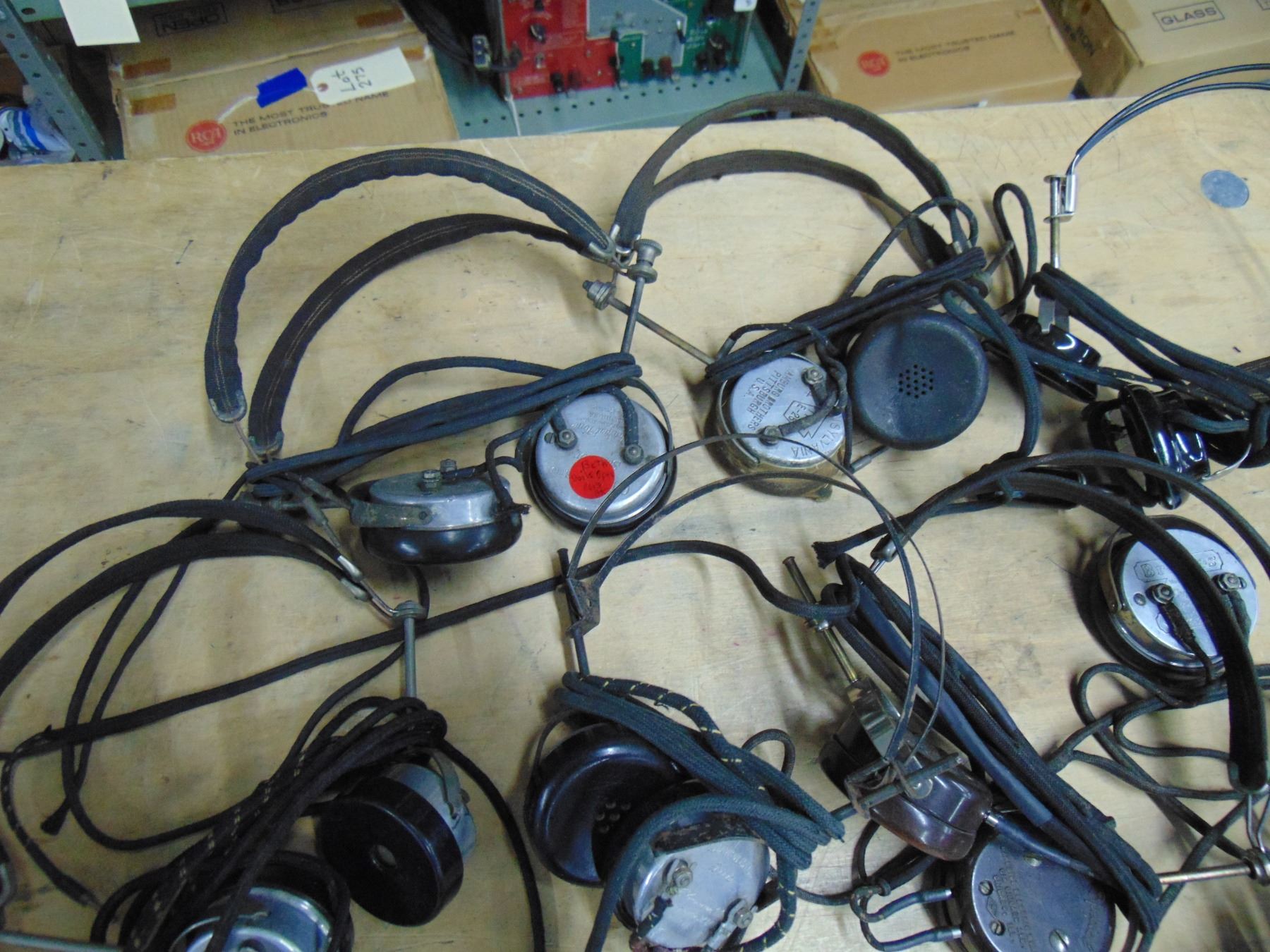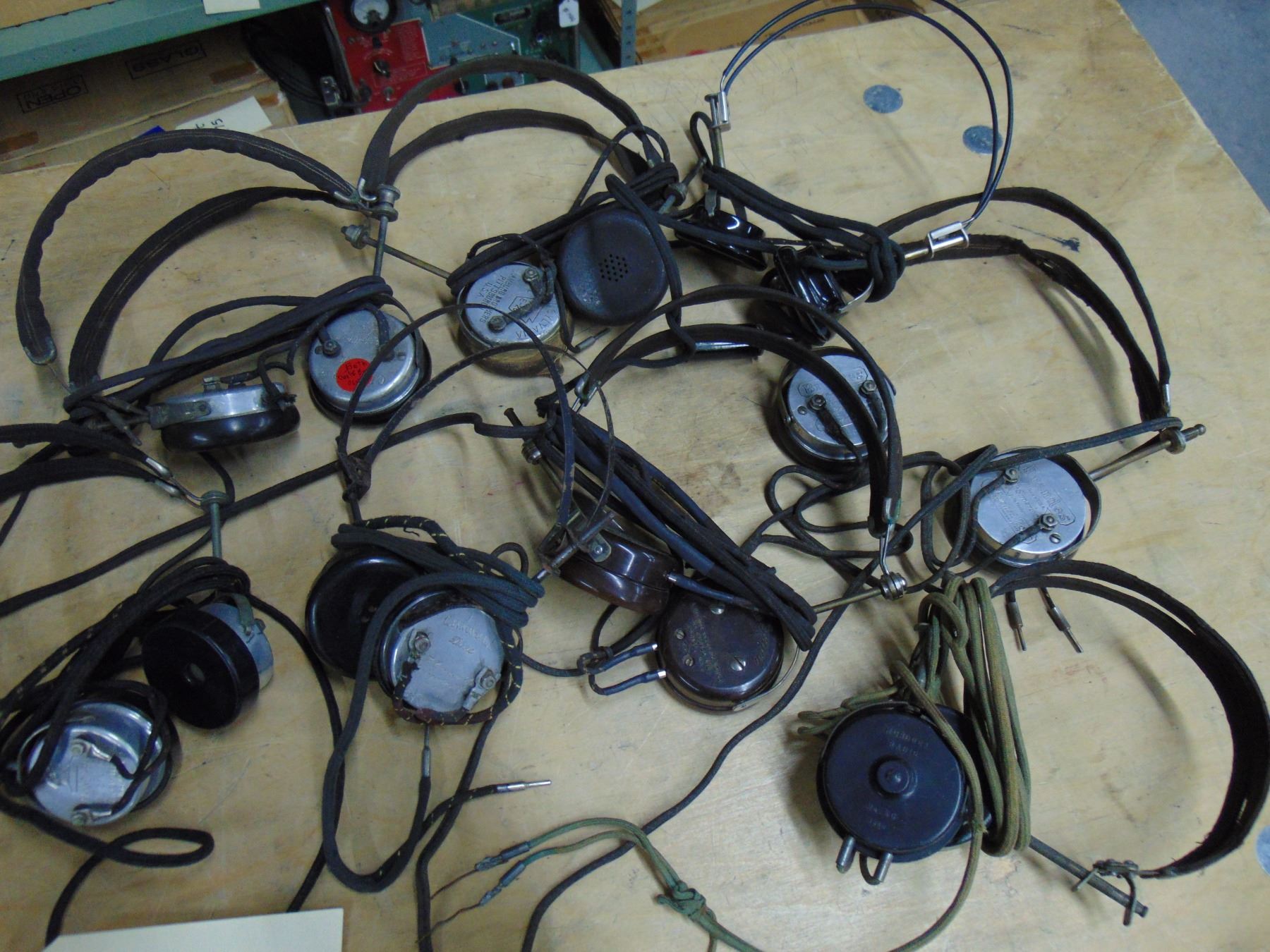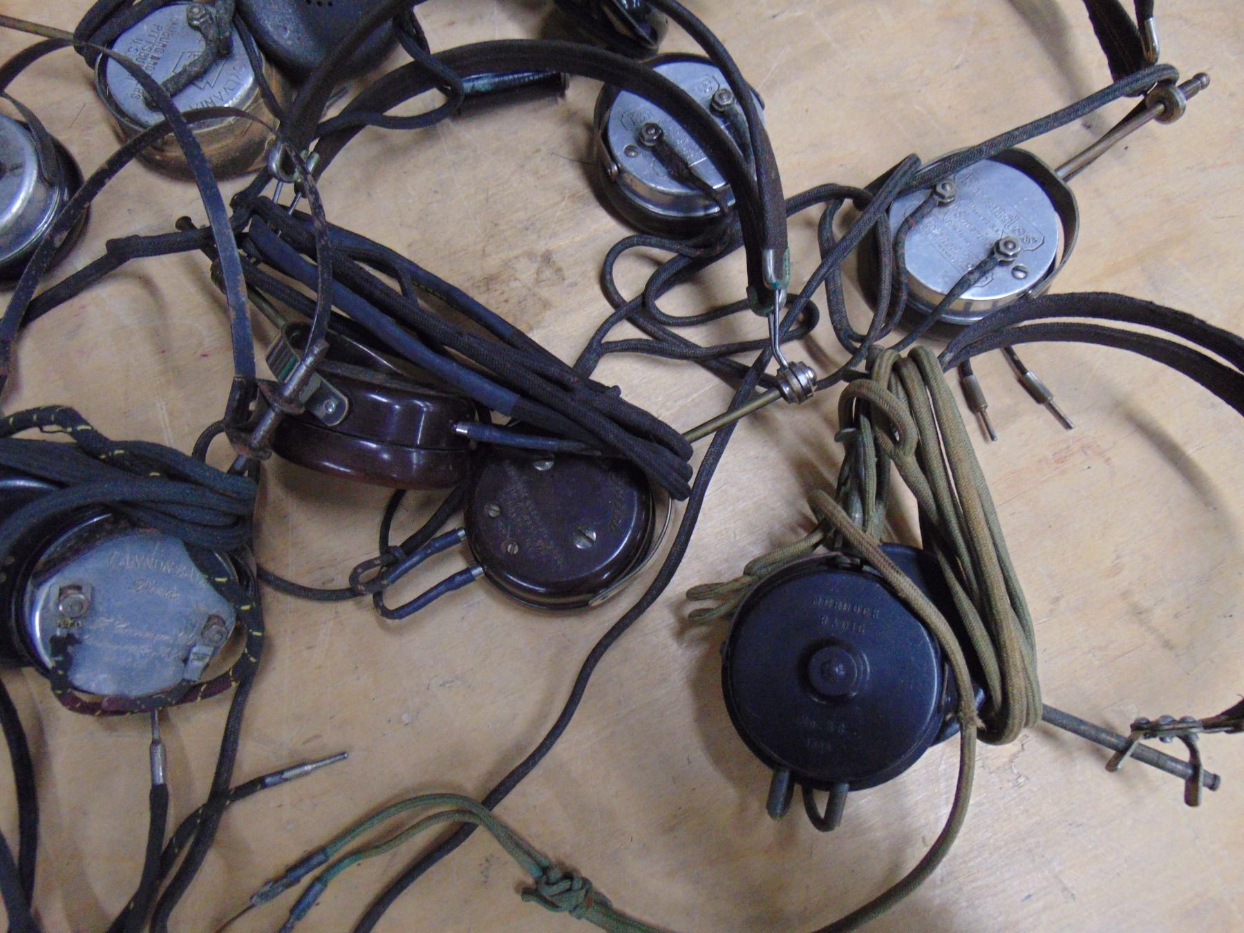 Flat of 8 vintage headphones