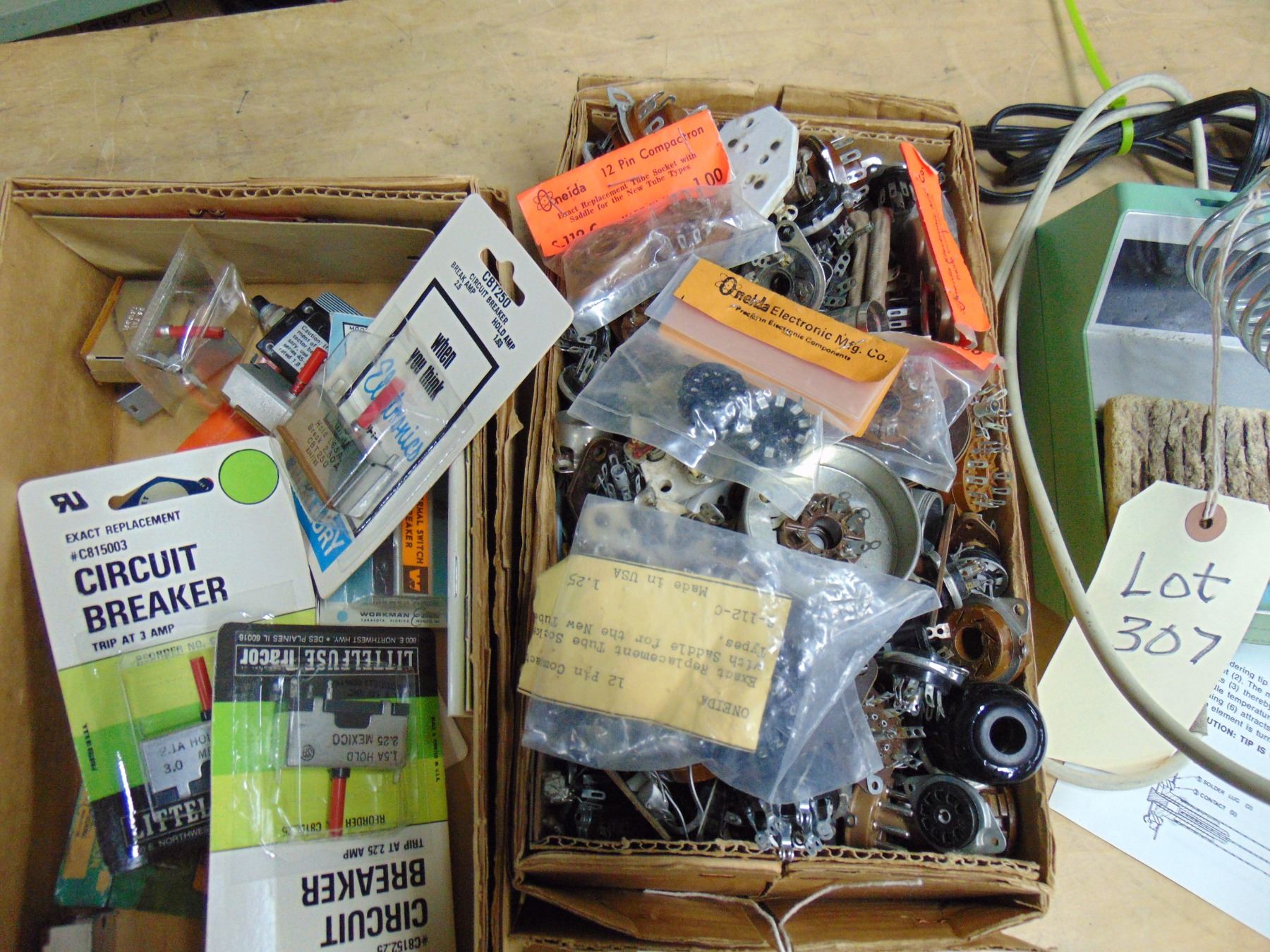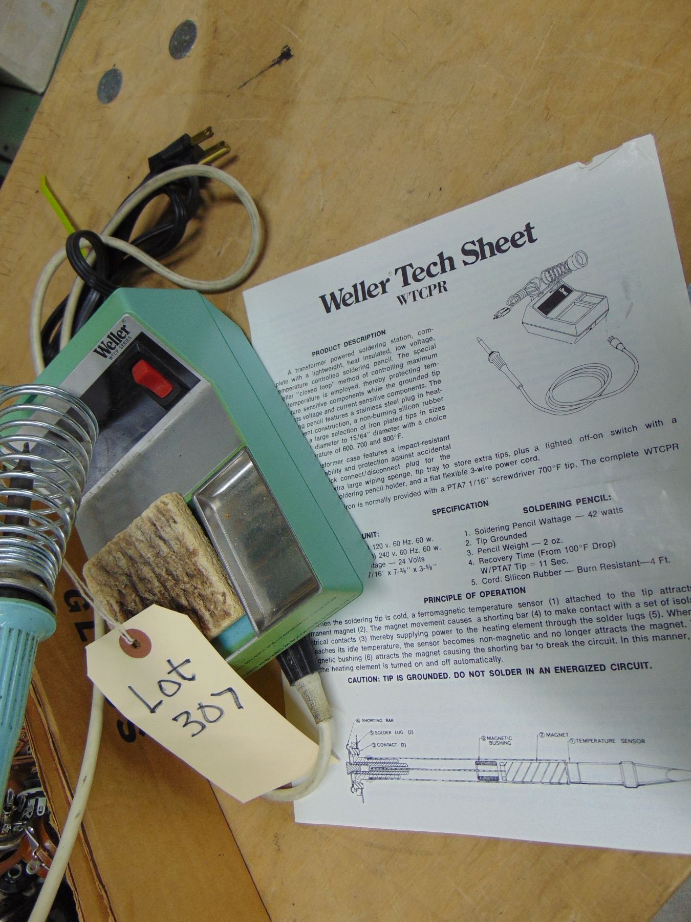 Weller soldering Iron with stand; also 2 boxes of tube sockets, misc. parts