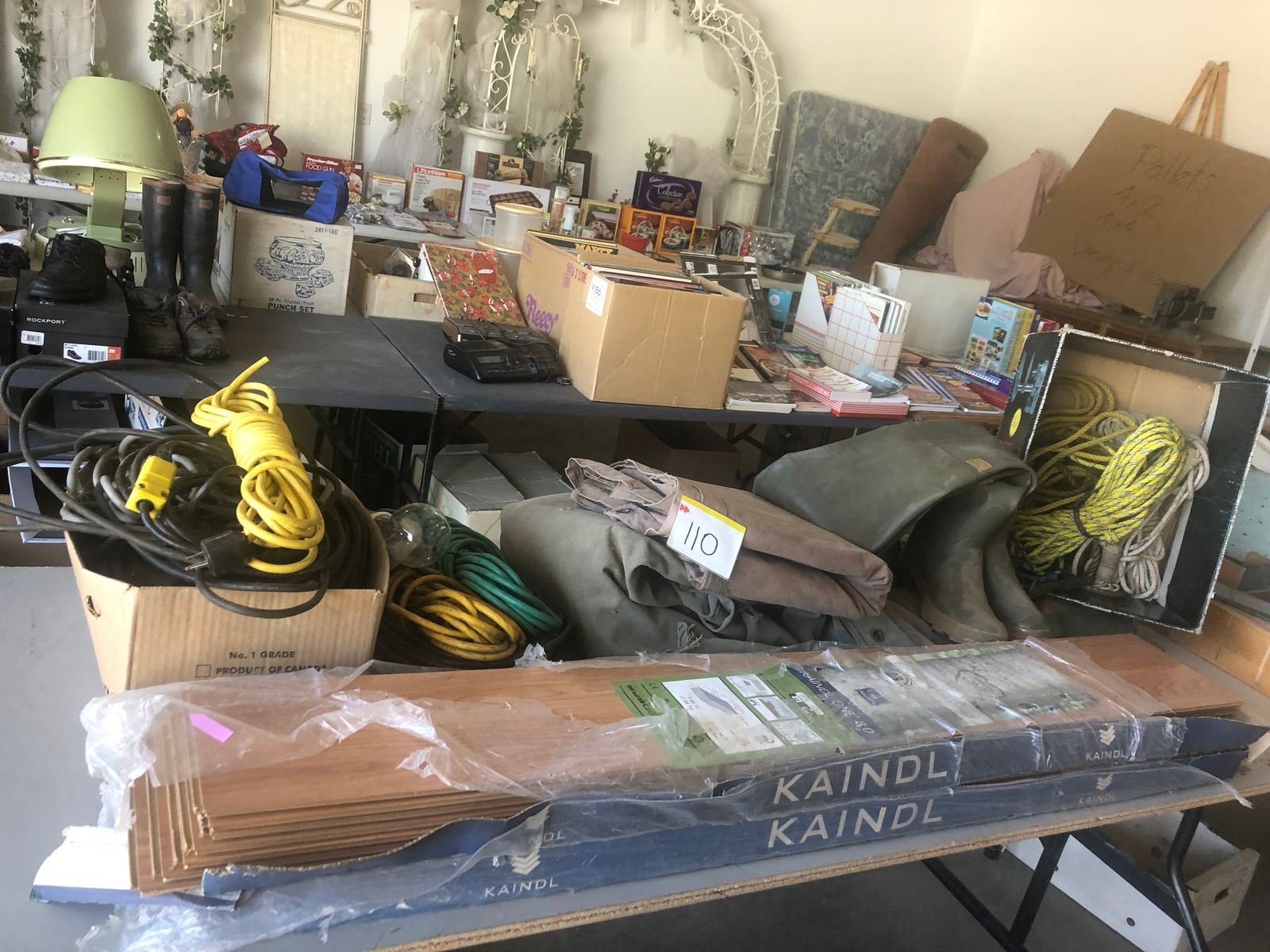 Tarps; hip waders; extension cords; rope; laminated flooring