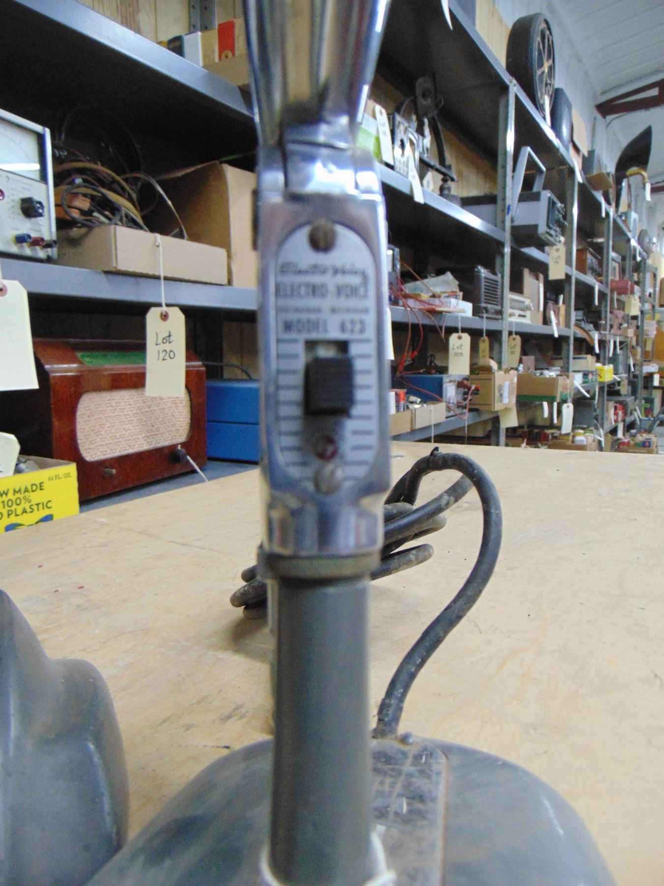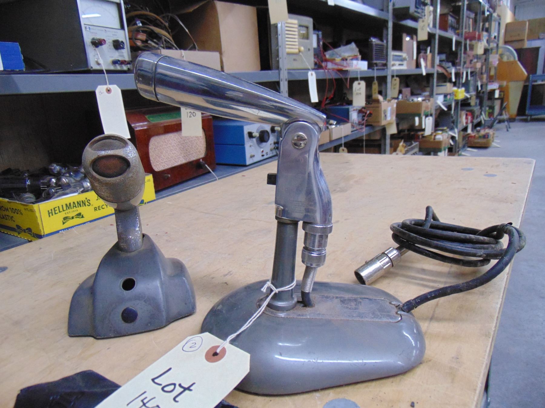 2 microphones; Electro Voice on stand, model 623; microphone