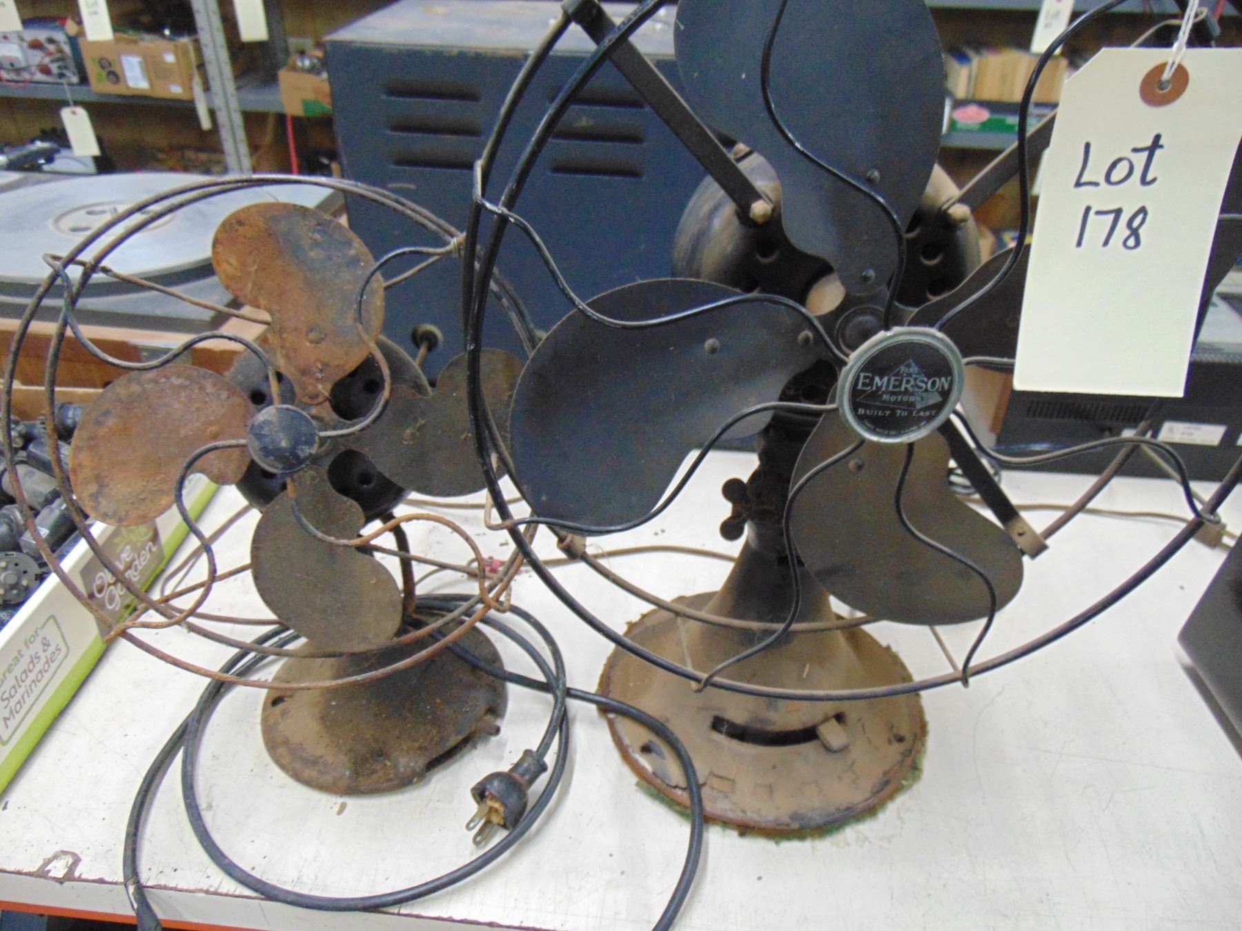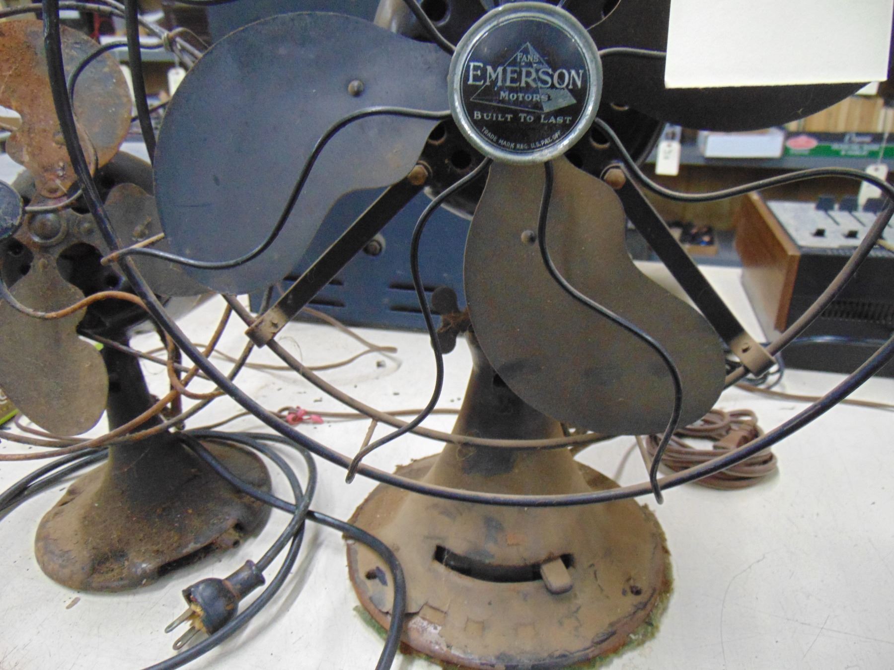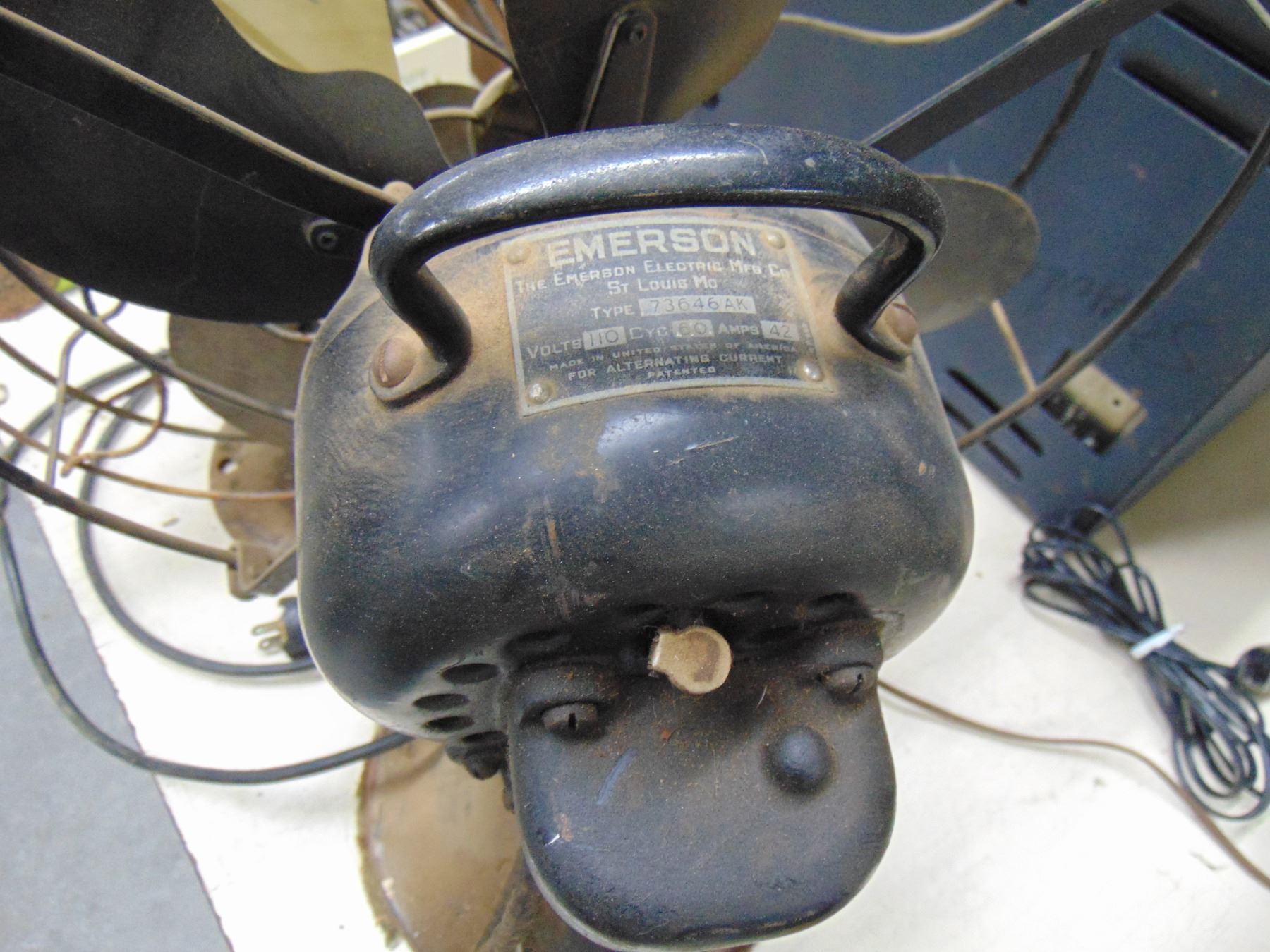 2 fans; large Emerson fan, circa 1931; small fan