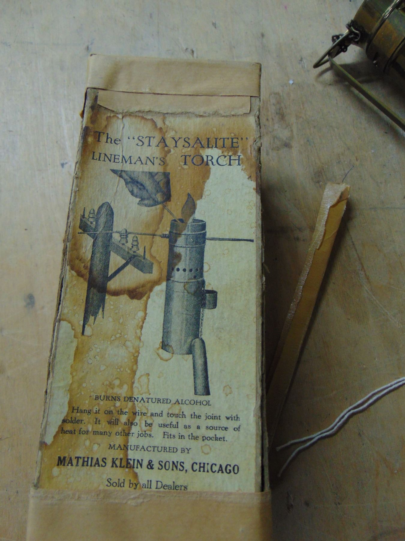 "Staysalite" lineman's torch; by Klein and Sons; in orig. box; burns alcohol