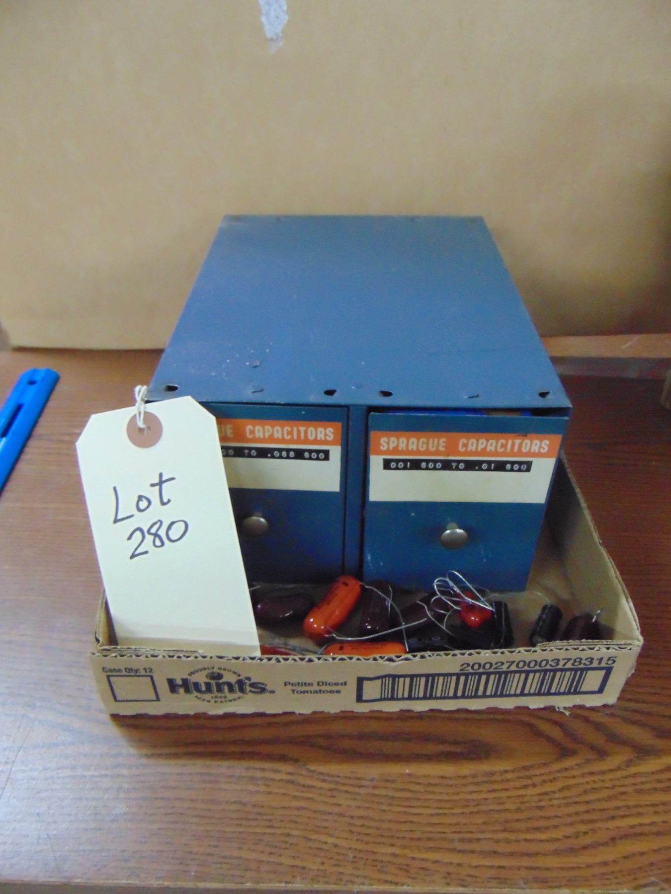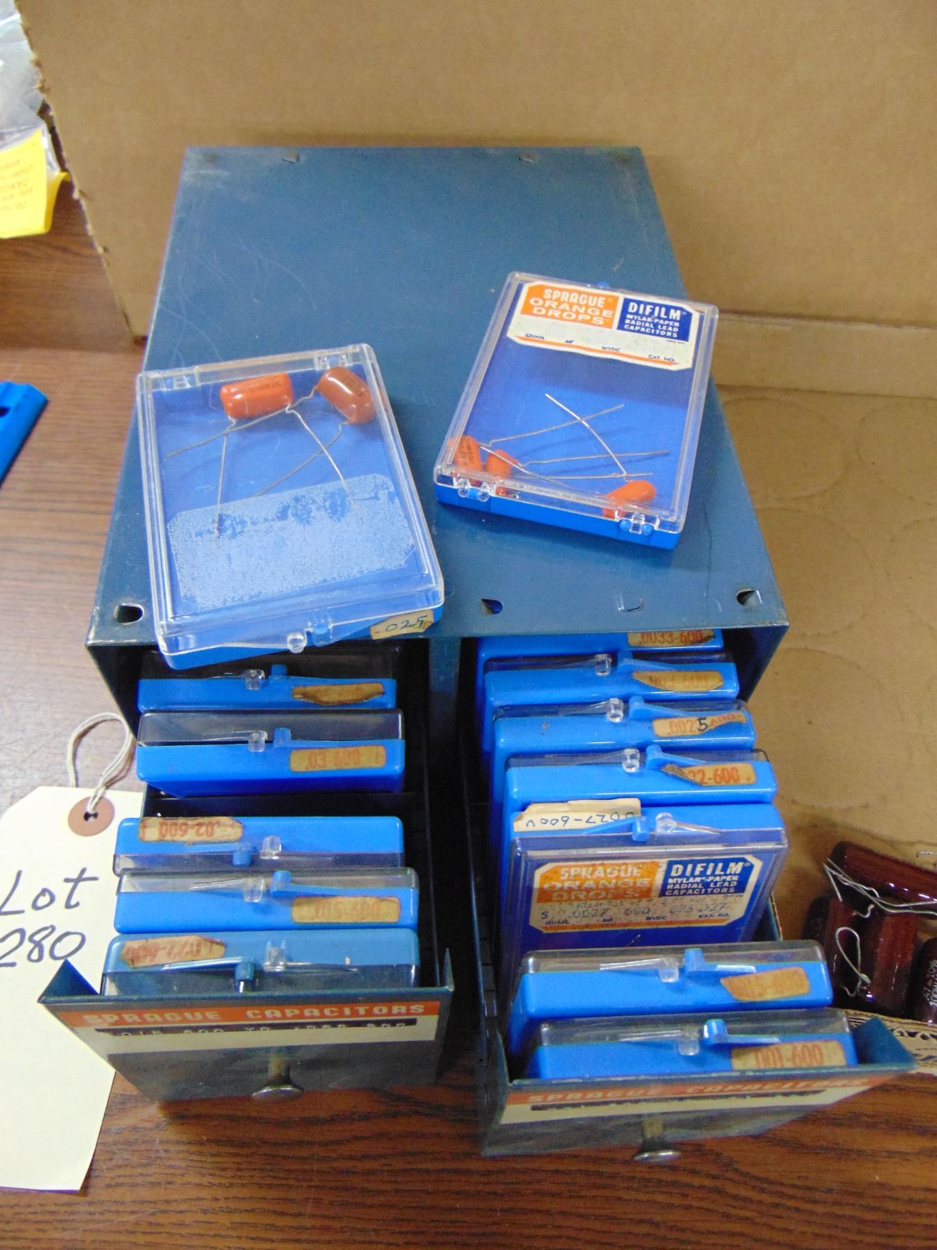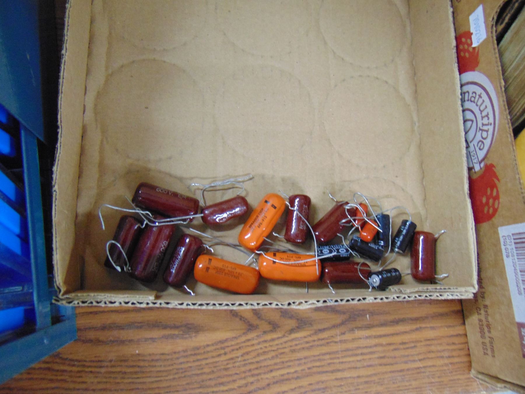 Cabinet with NOS mylar capacitors; contains most popular values for radio repair