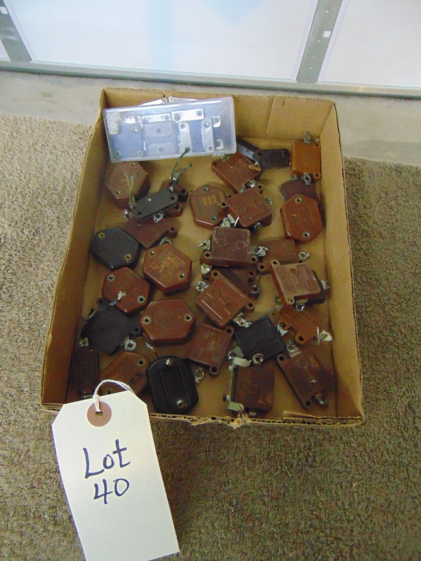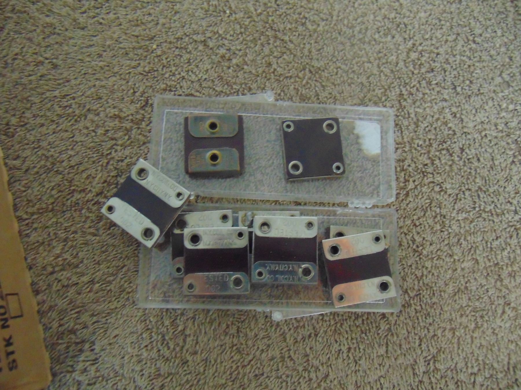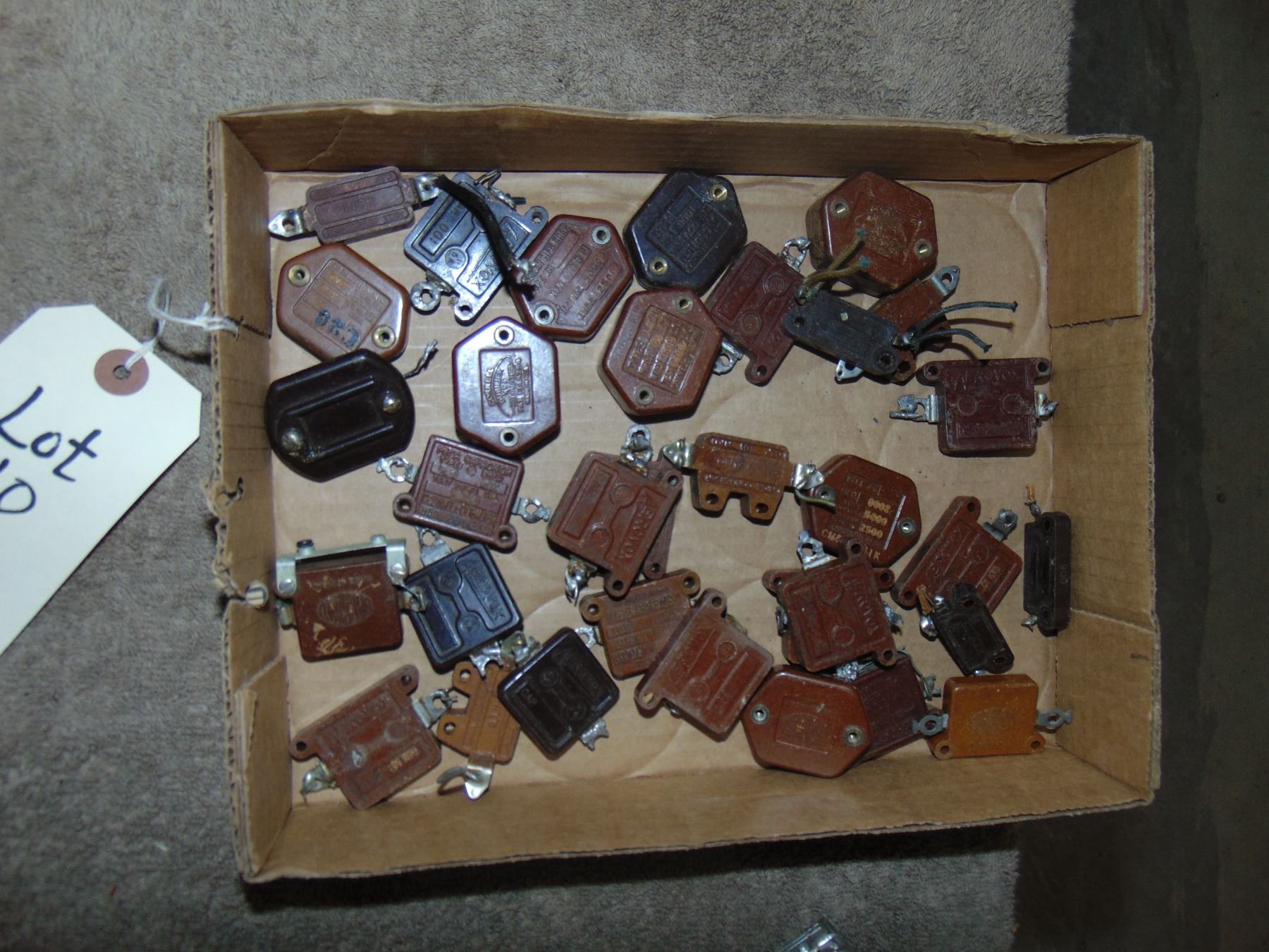 Flat of early high voltage capacitors; mostly transmitter type