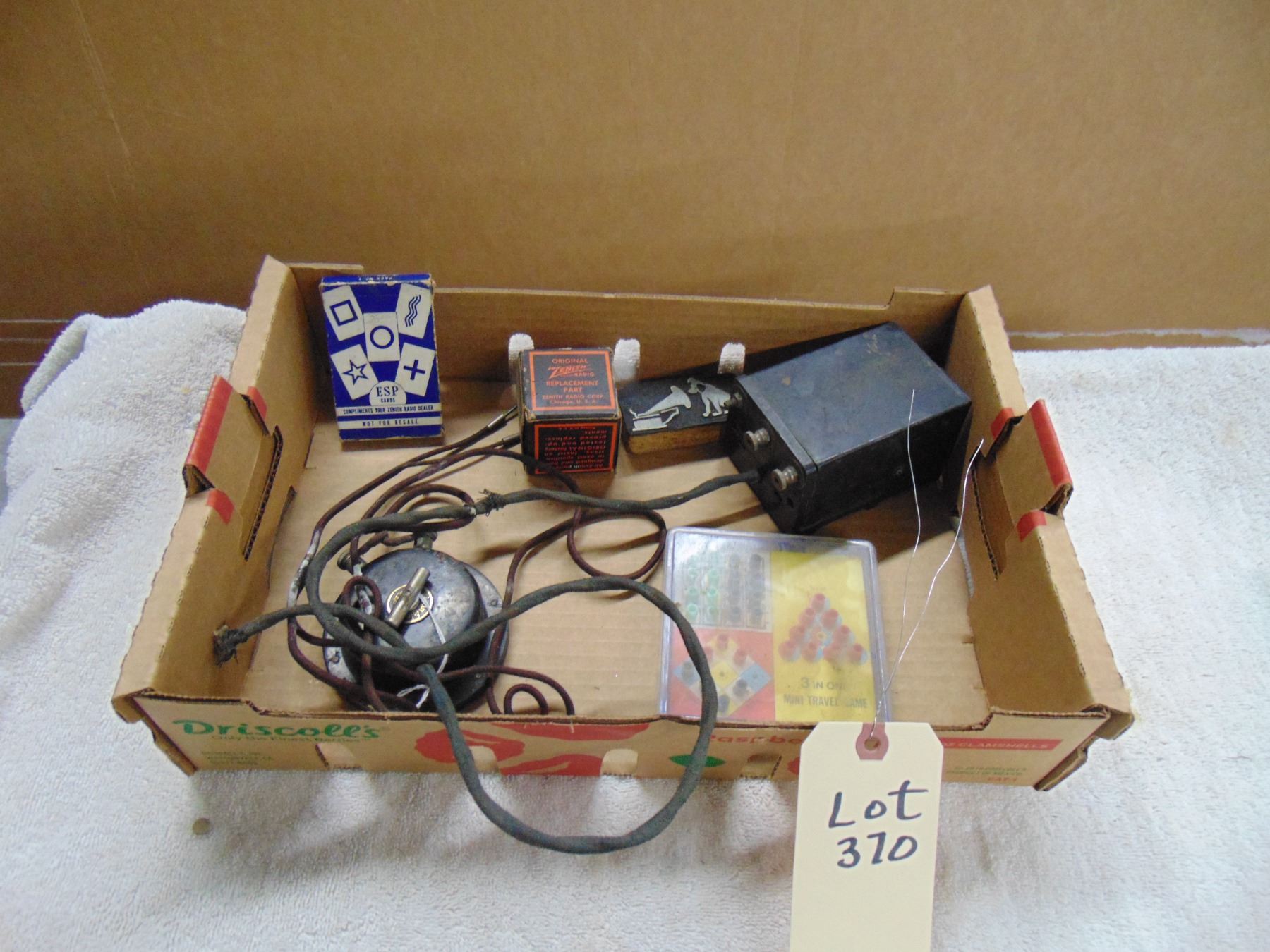 Flat of misc. radio items and parts; includes Nipper printer block, etc.