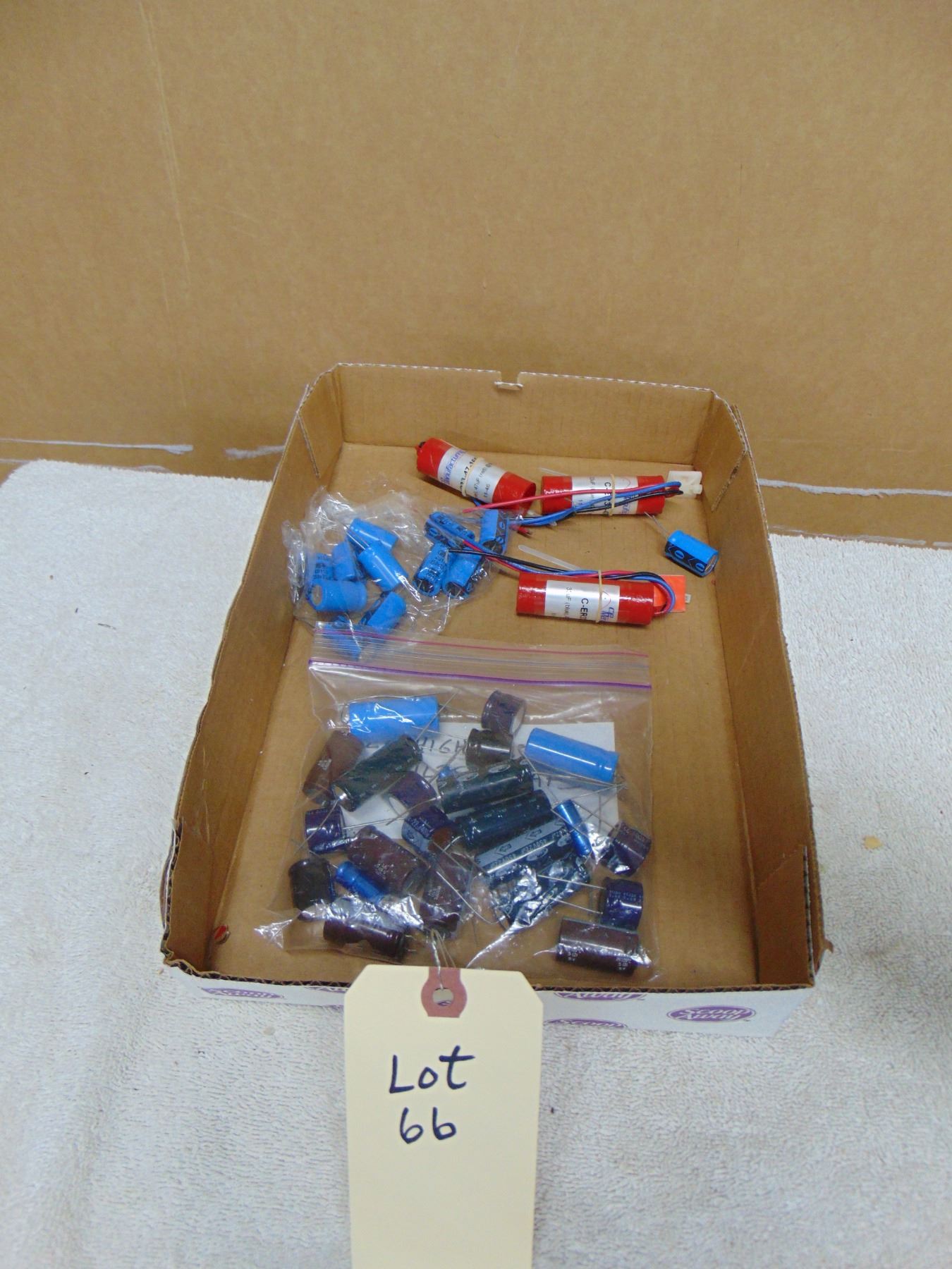 Flat of misc. high voltage electrolytics capacitors; new