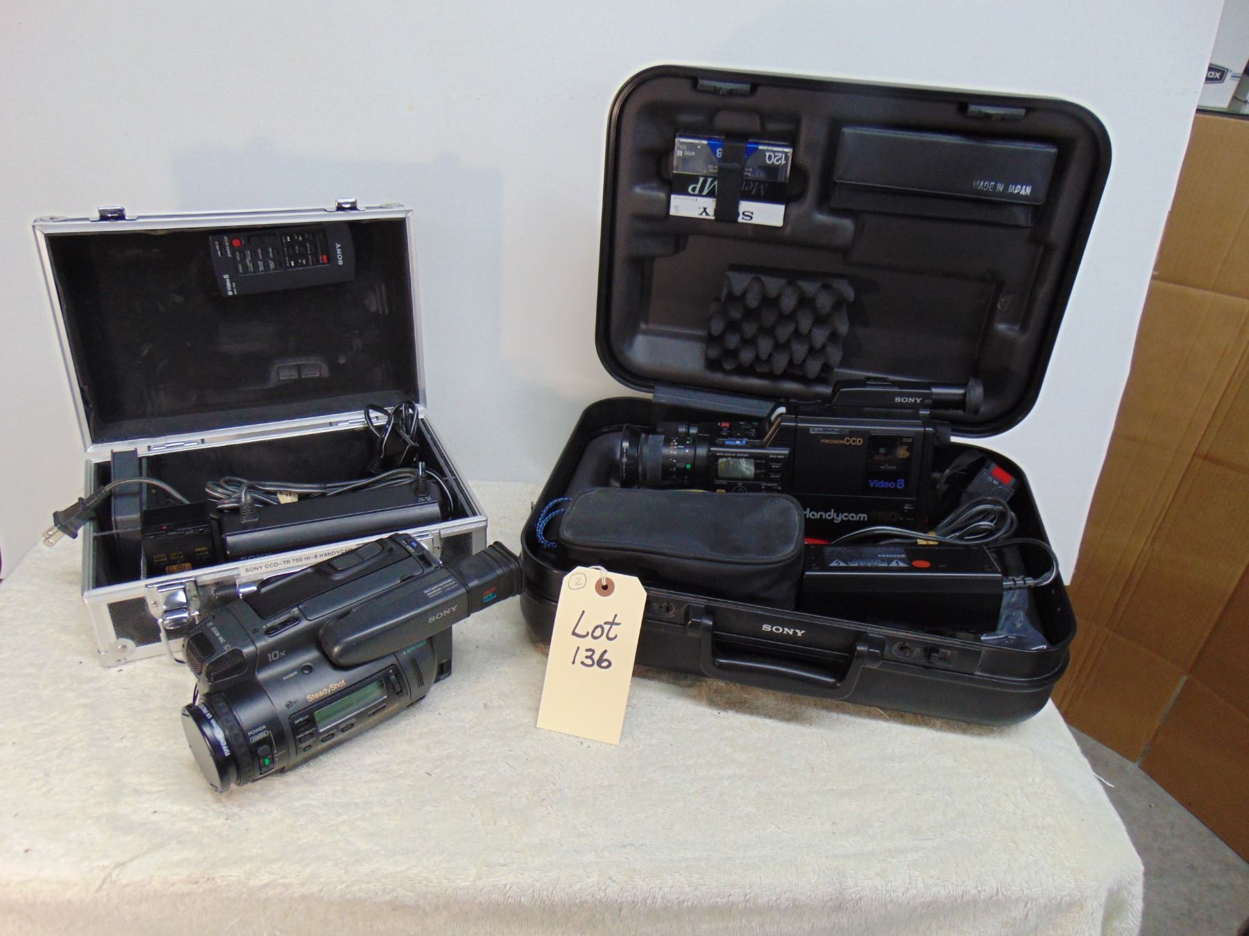 Two Sony handi-cam video cameras; both color; both include cases and accessories; 8mm