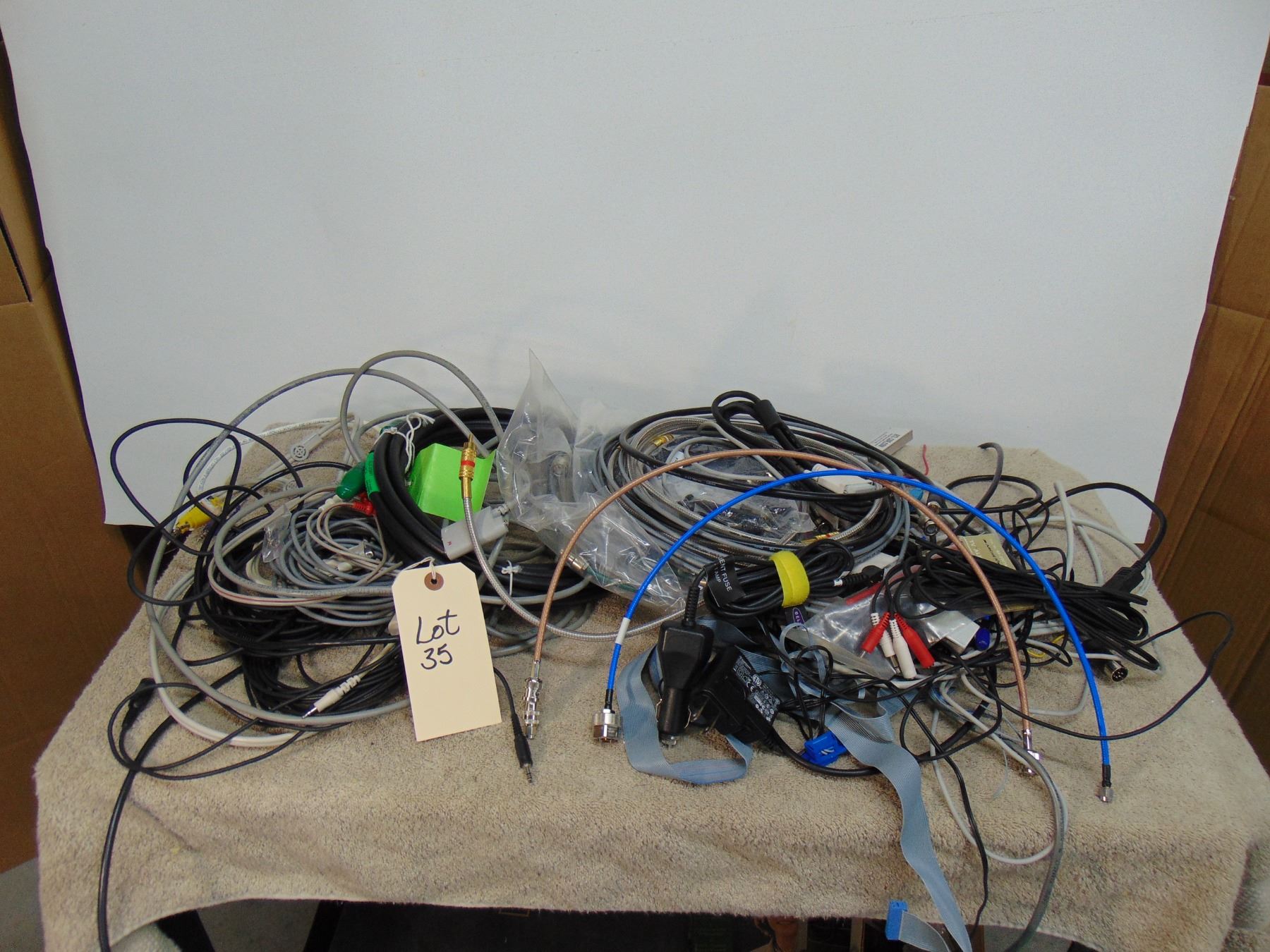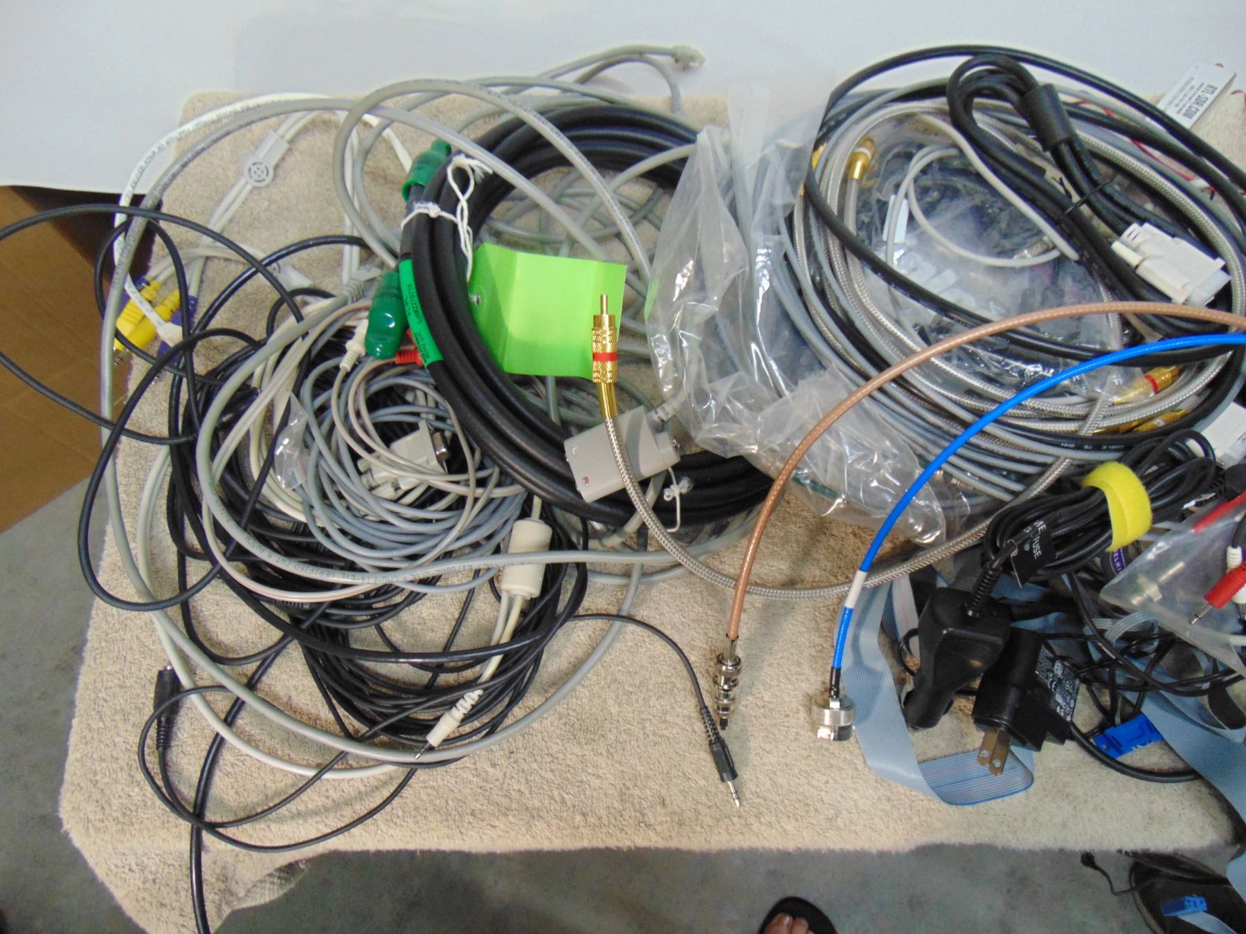 Large box misc cables; includes RG8U coax (18 ft, NOS, RG-8), PL-259 connectors