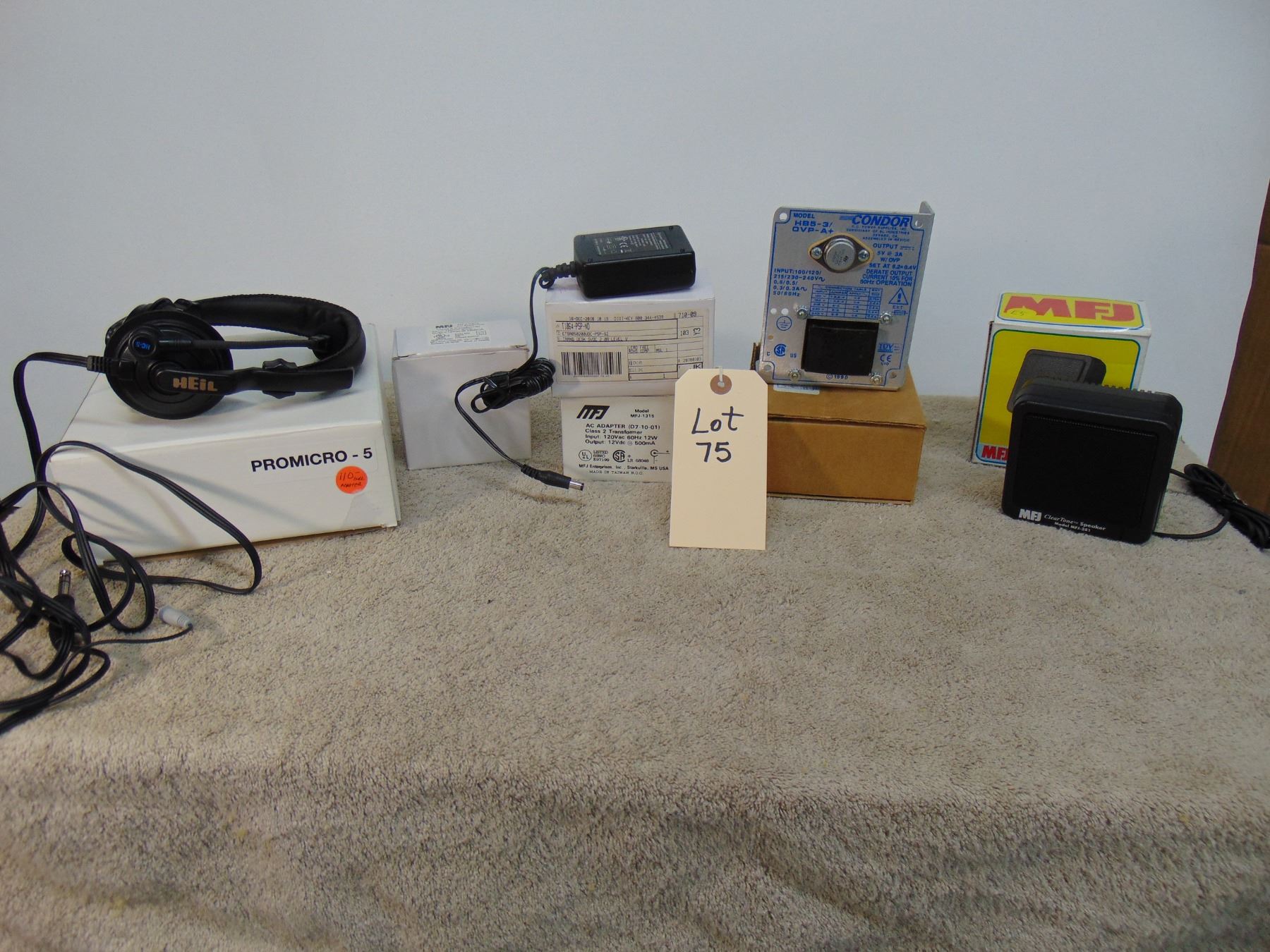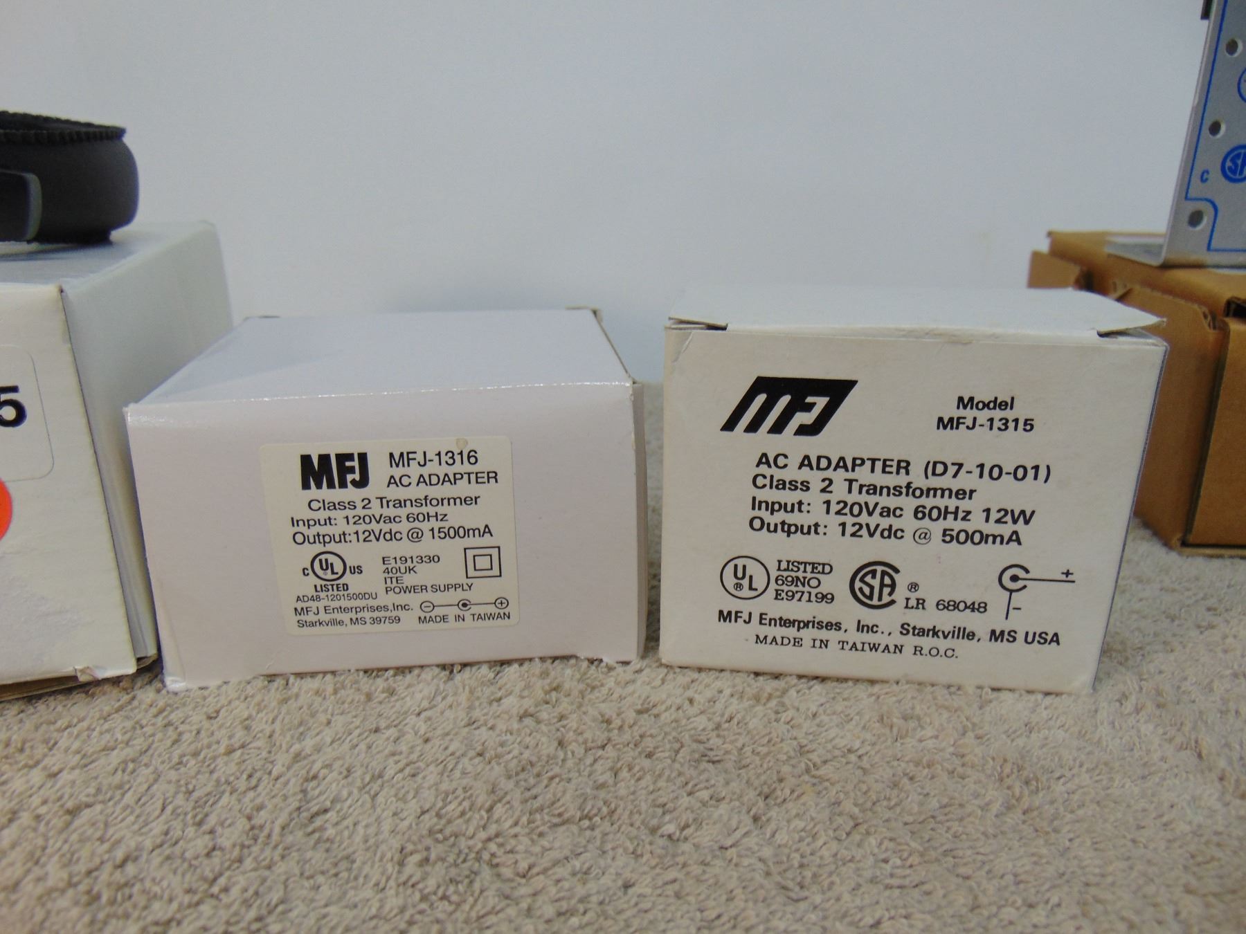 Flat of wall warts, power supply, speaker (MFJ), Heil headphones/microphone; all in original boxes and appear new; good lot