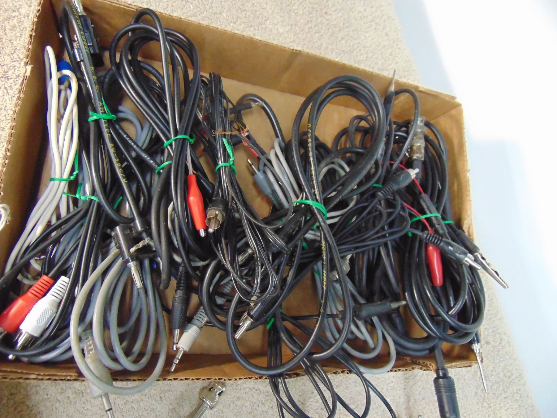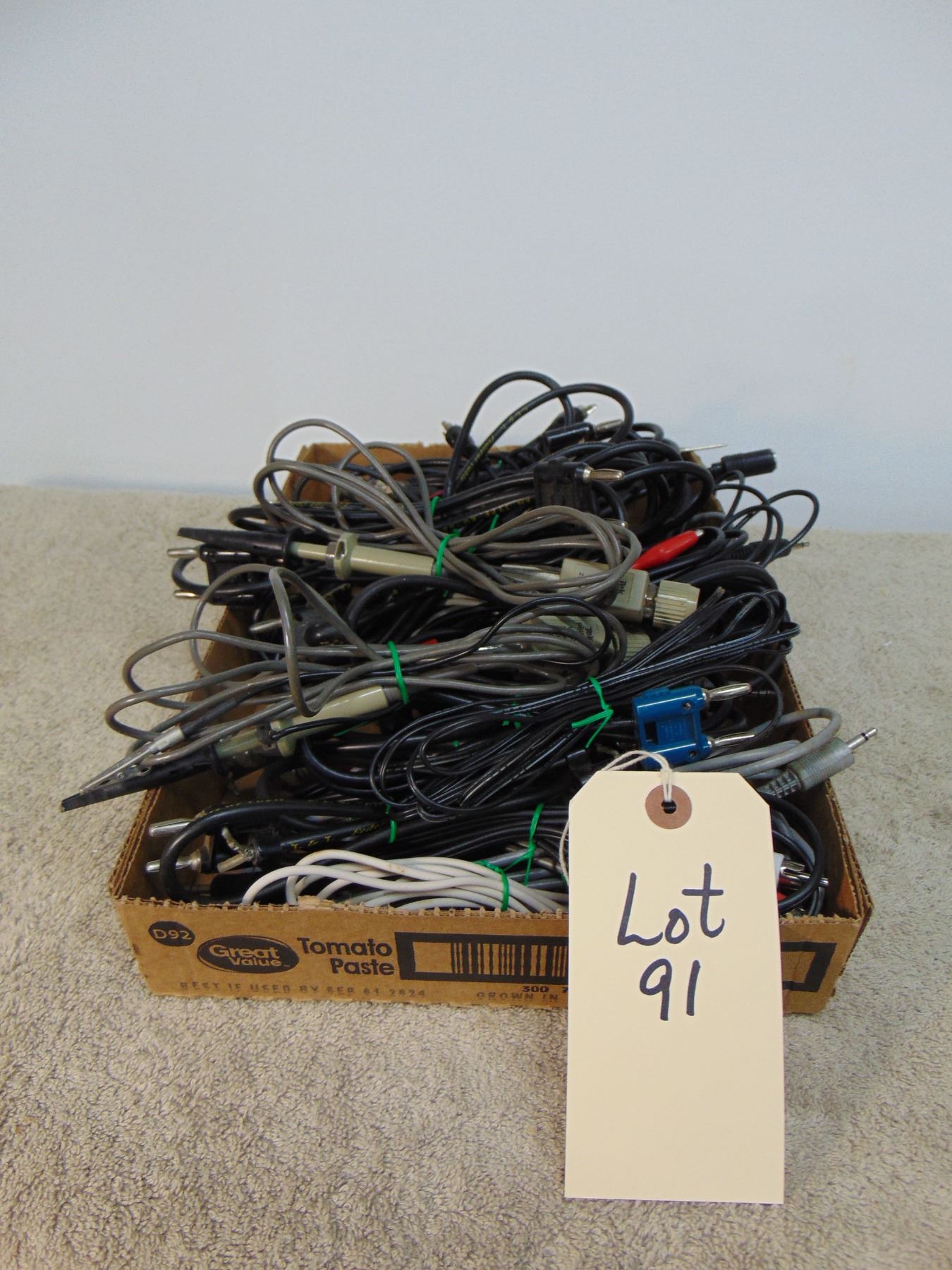 Flat of misc. connector calbles and oscilloscope test probes; good box