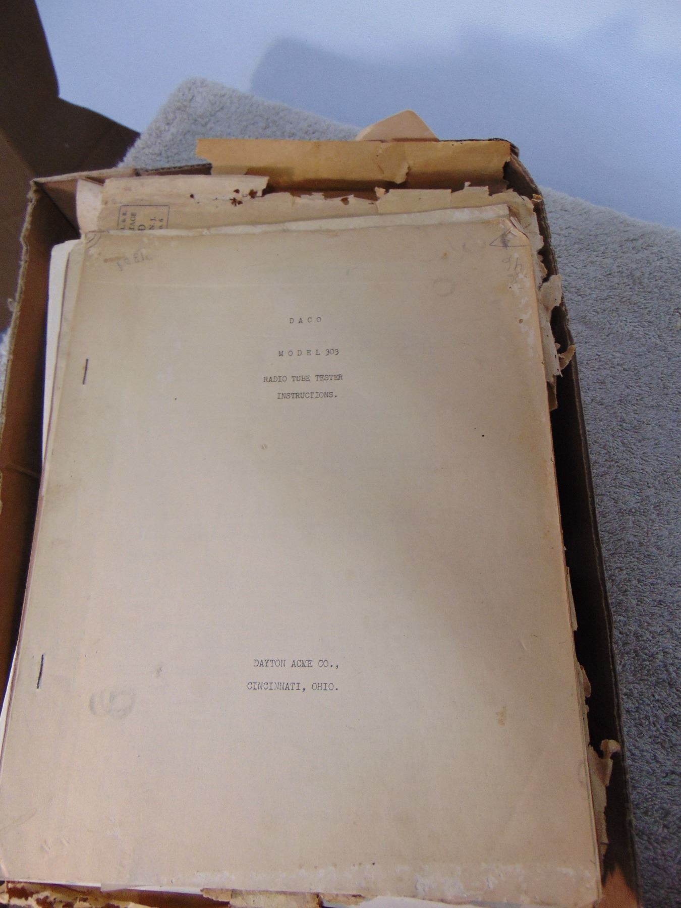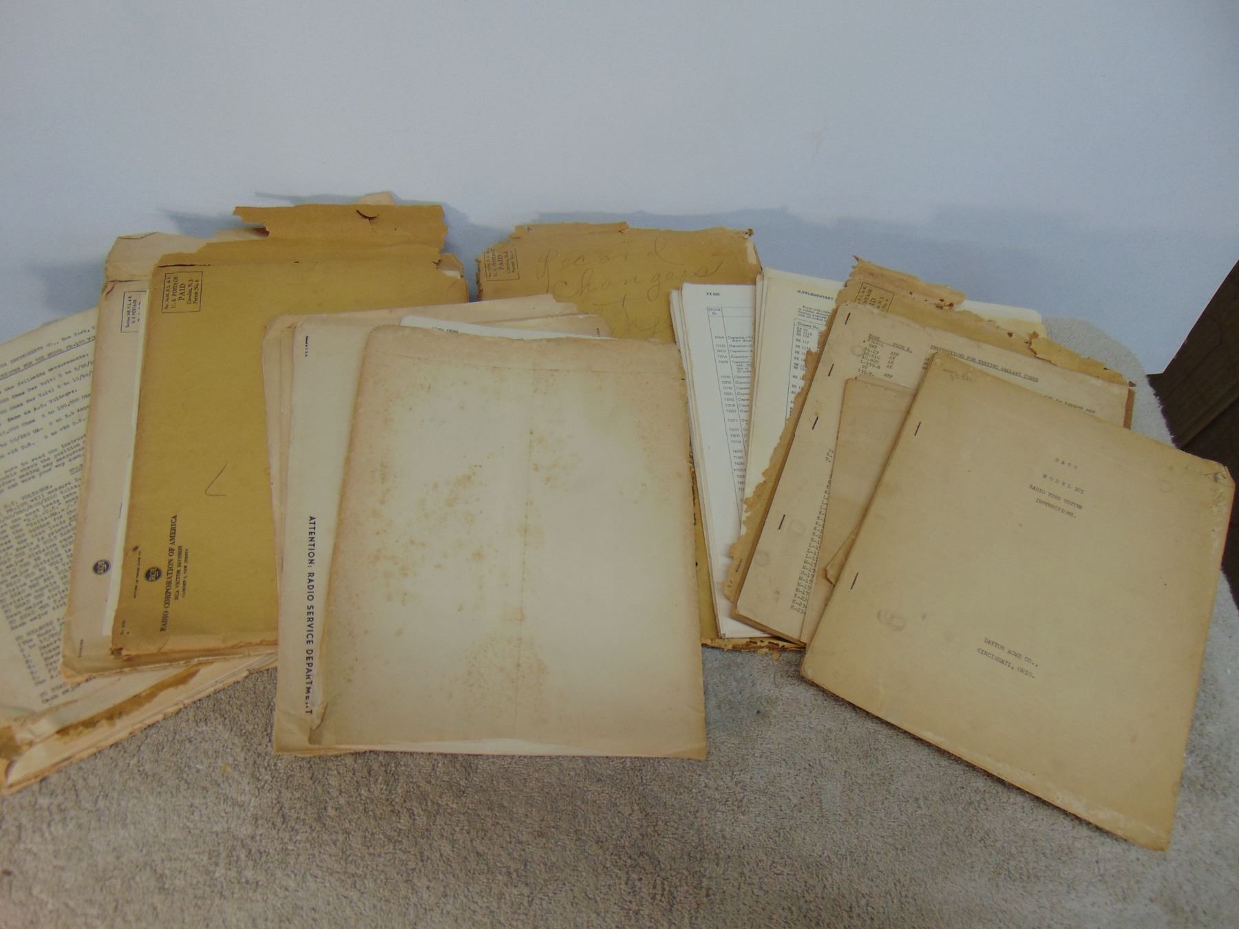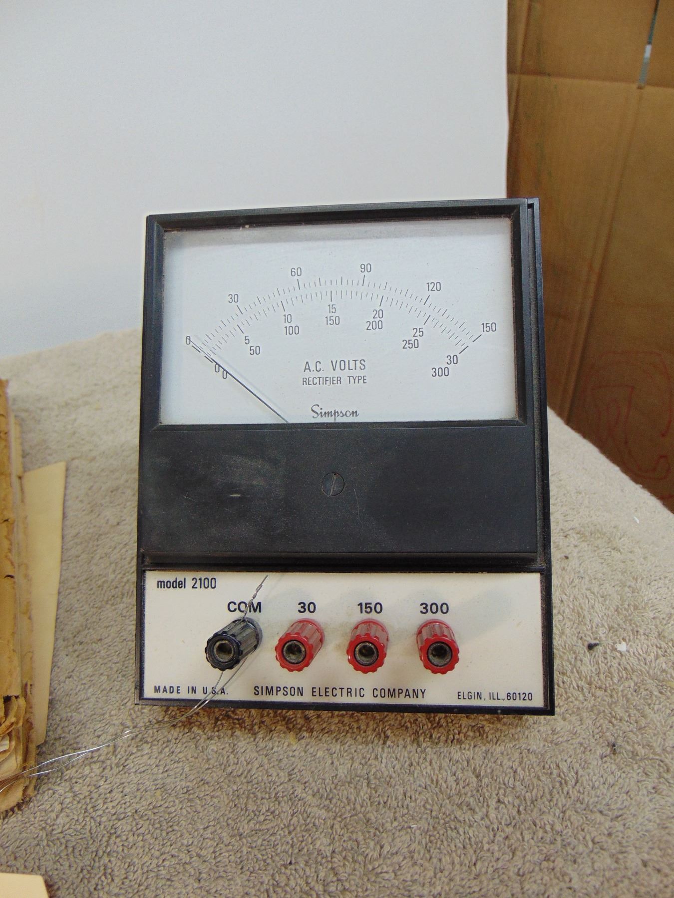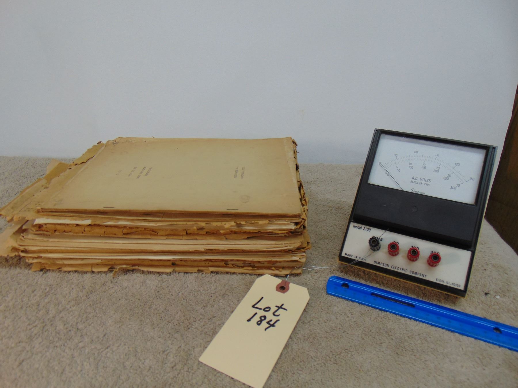 Simpson AC volt meter; ALSO, flat of misc vintage manuals and service data (mostly RCA)