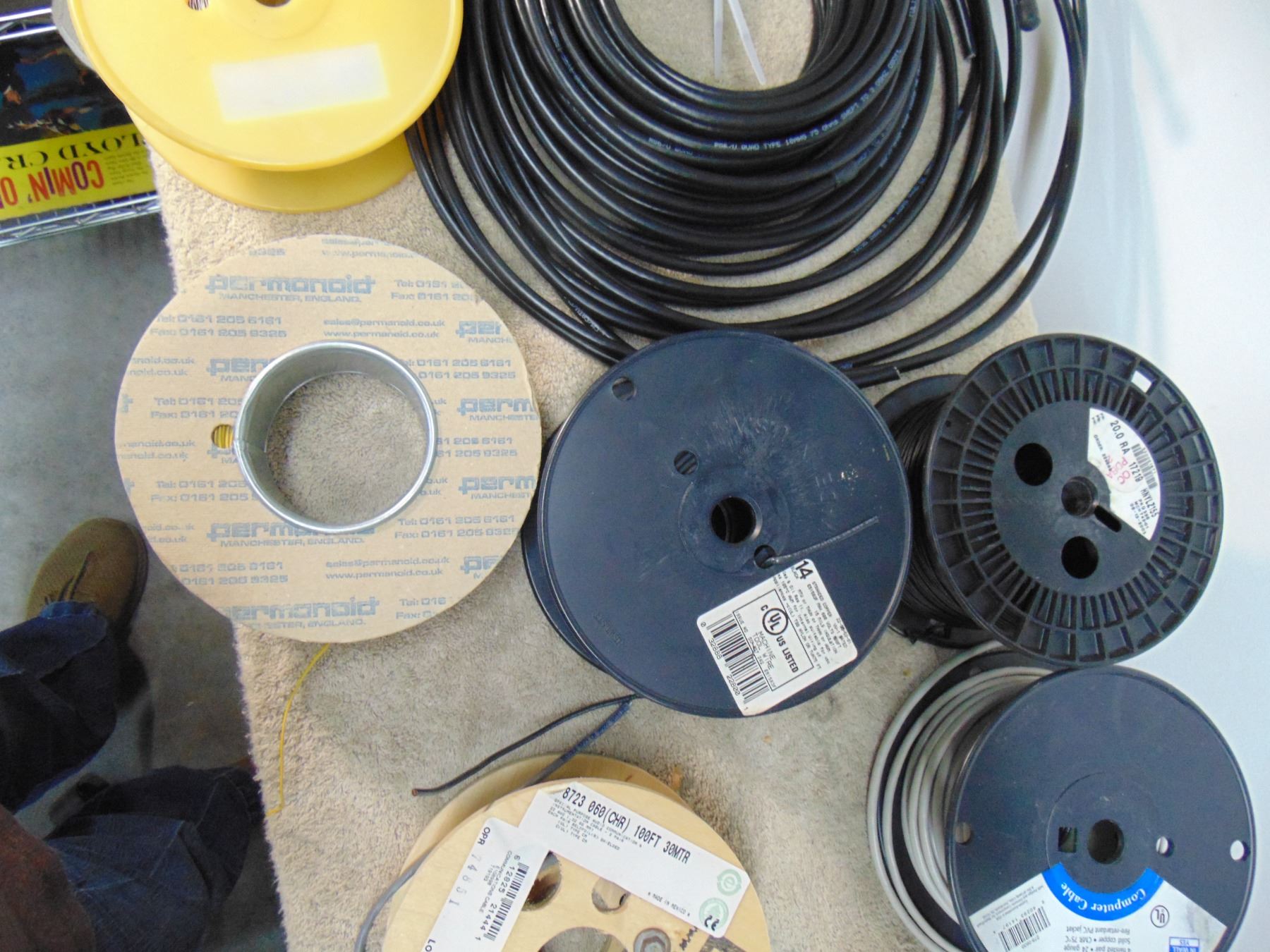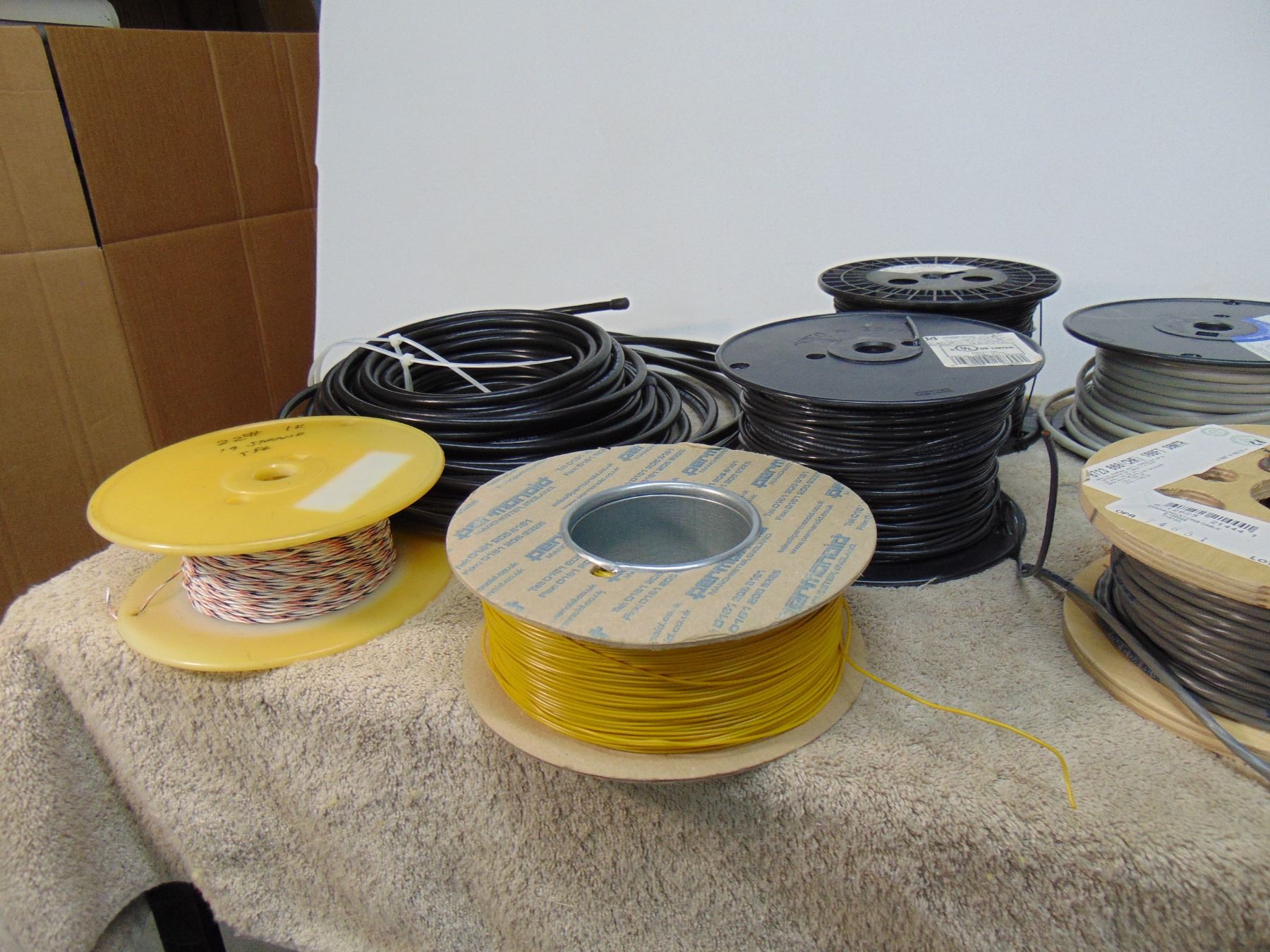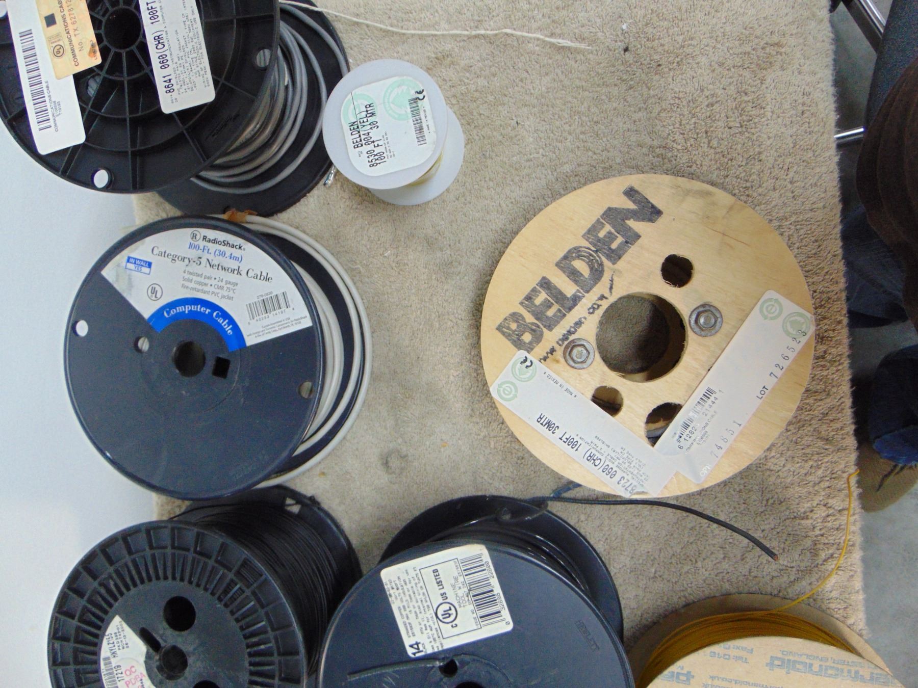 Large box misc coax, network cable, and multi and single stranded spools of wire
