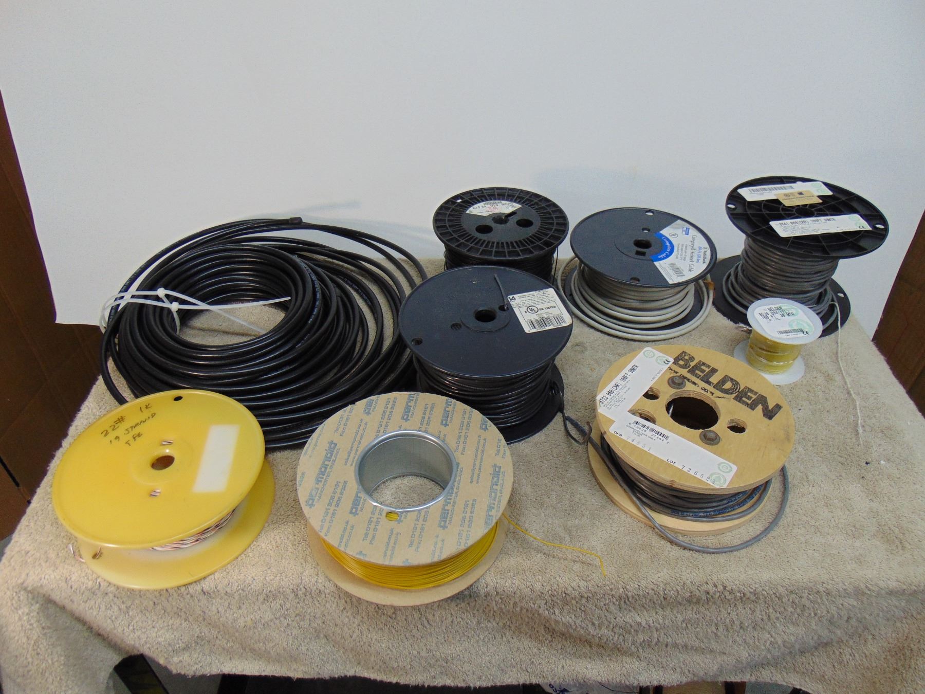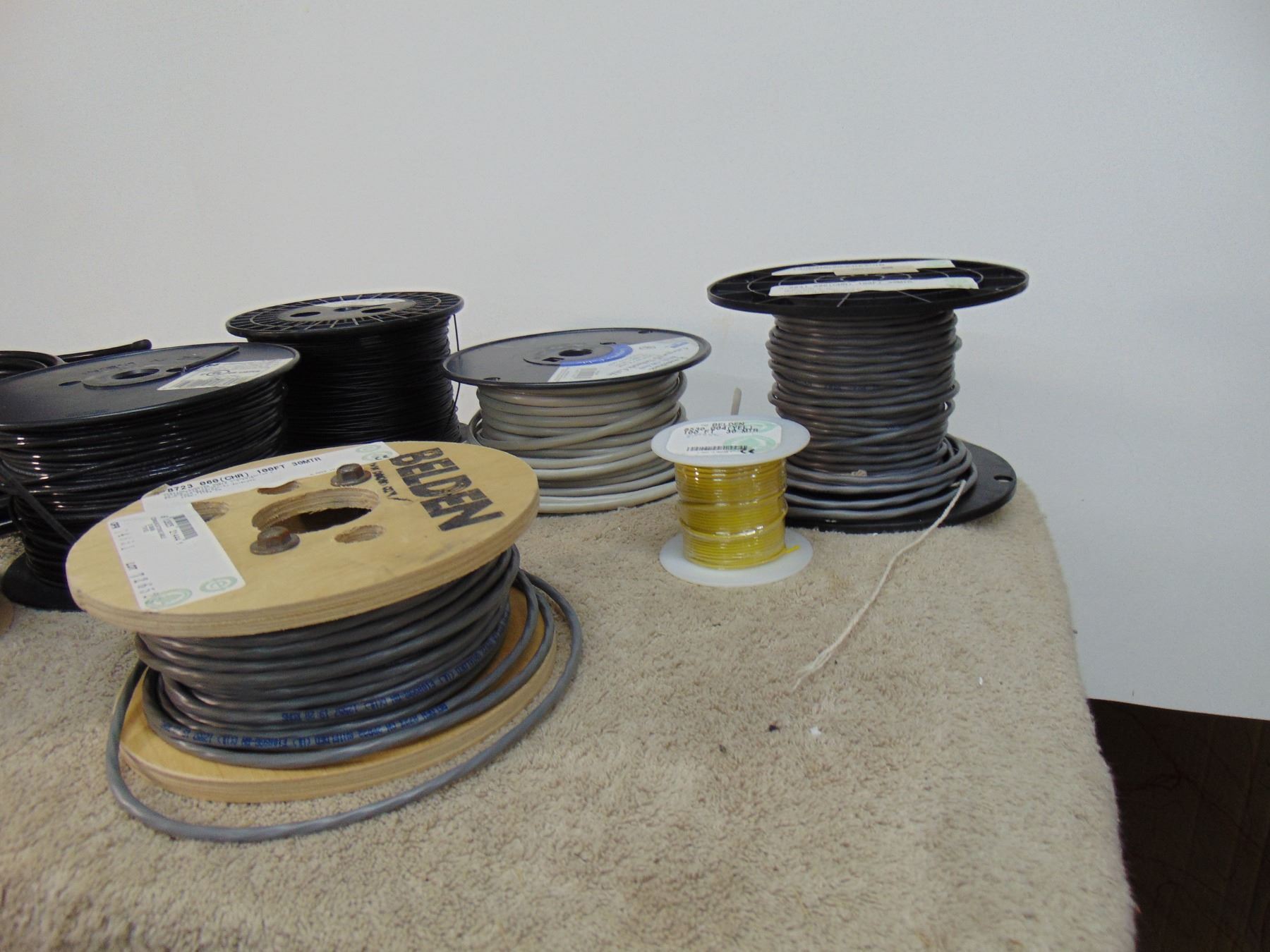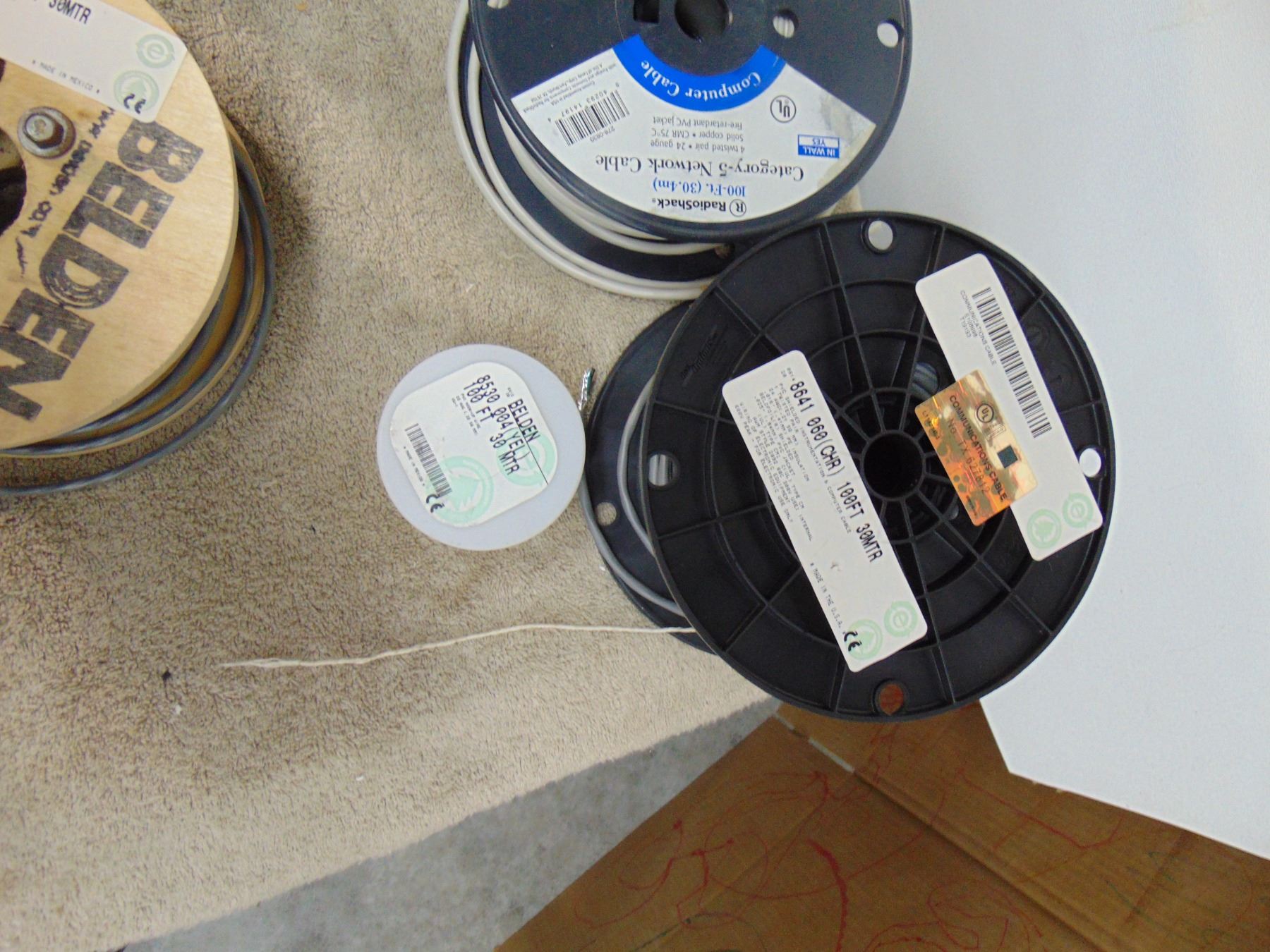 Large box misc coax, network cable, and multi and single stranded spools of wire