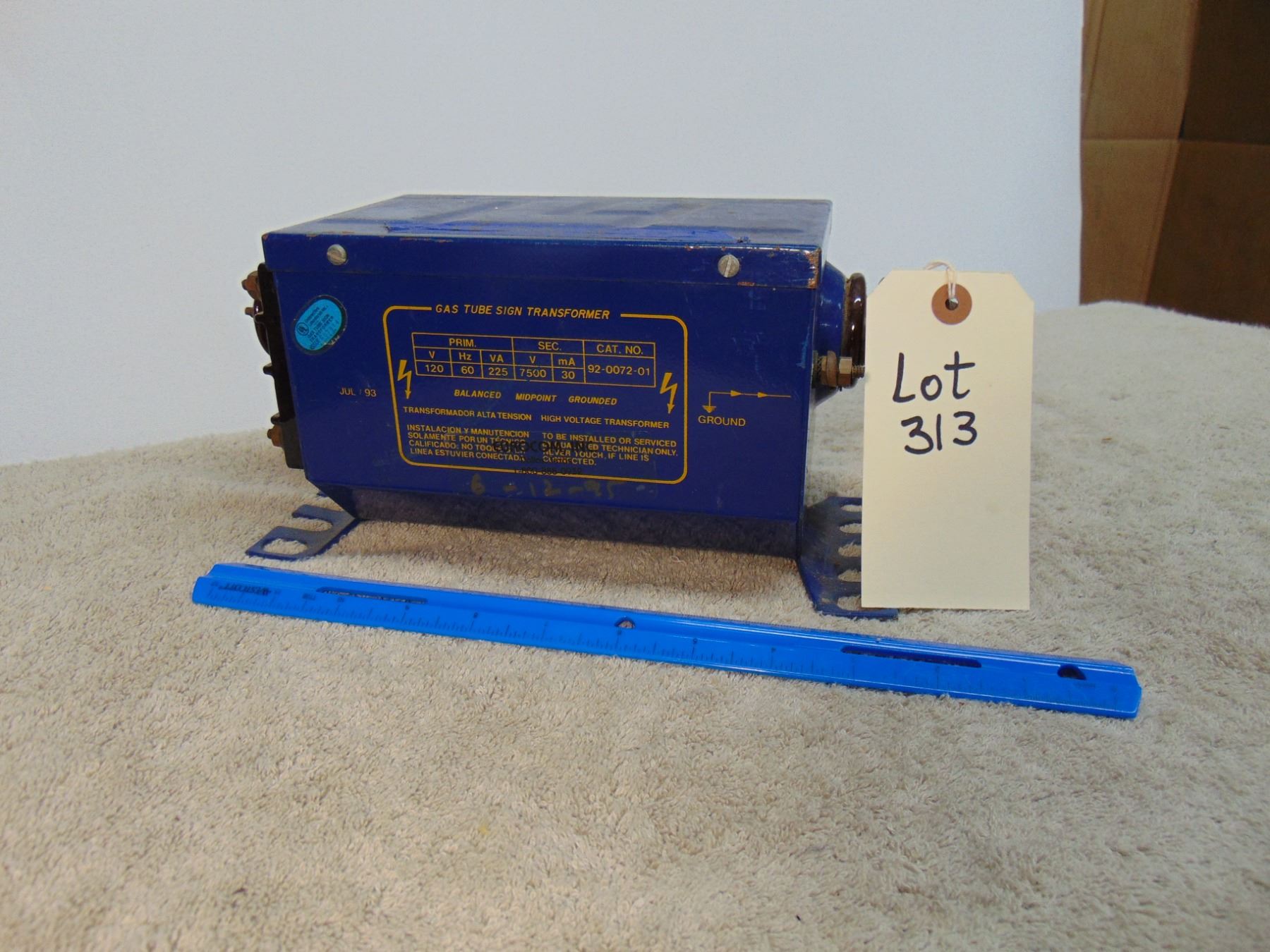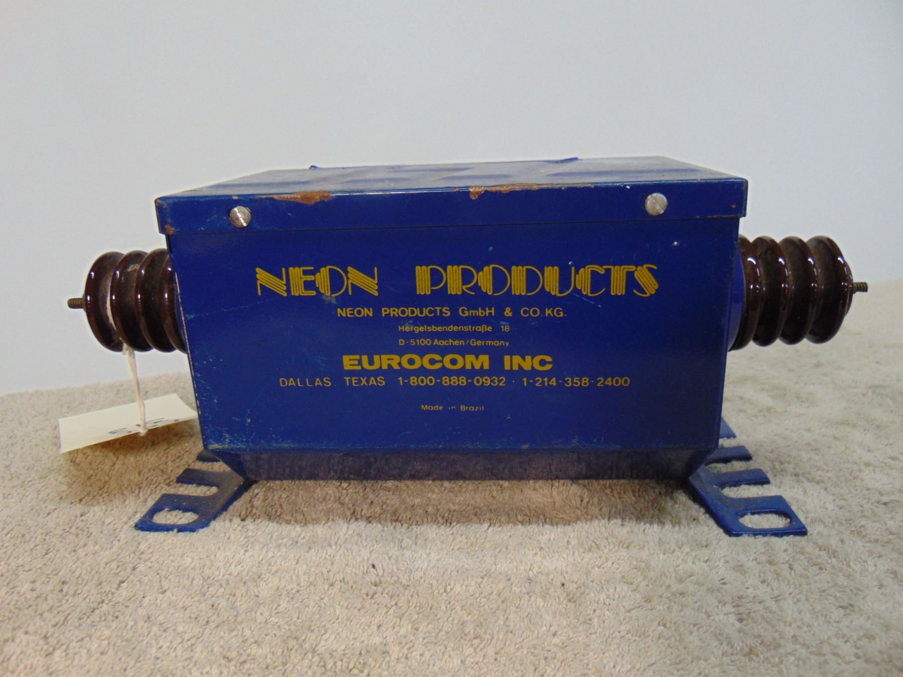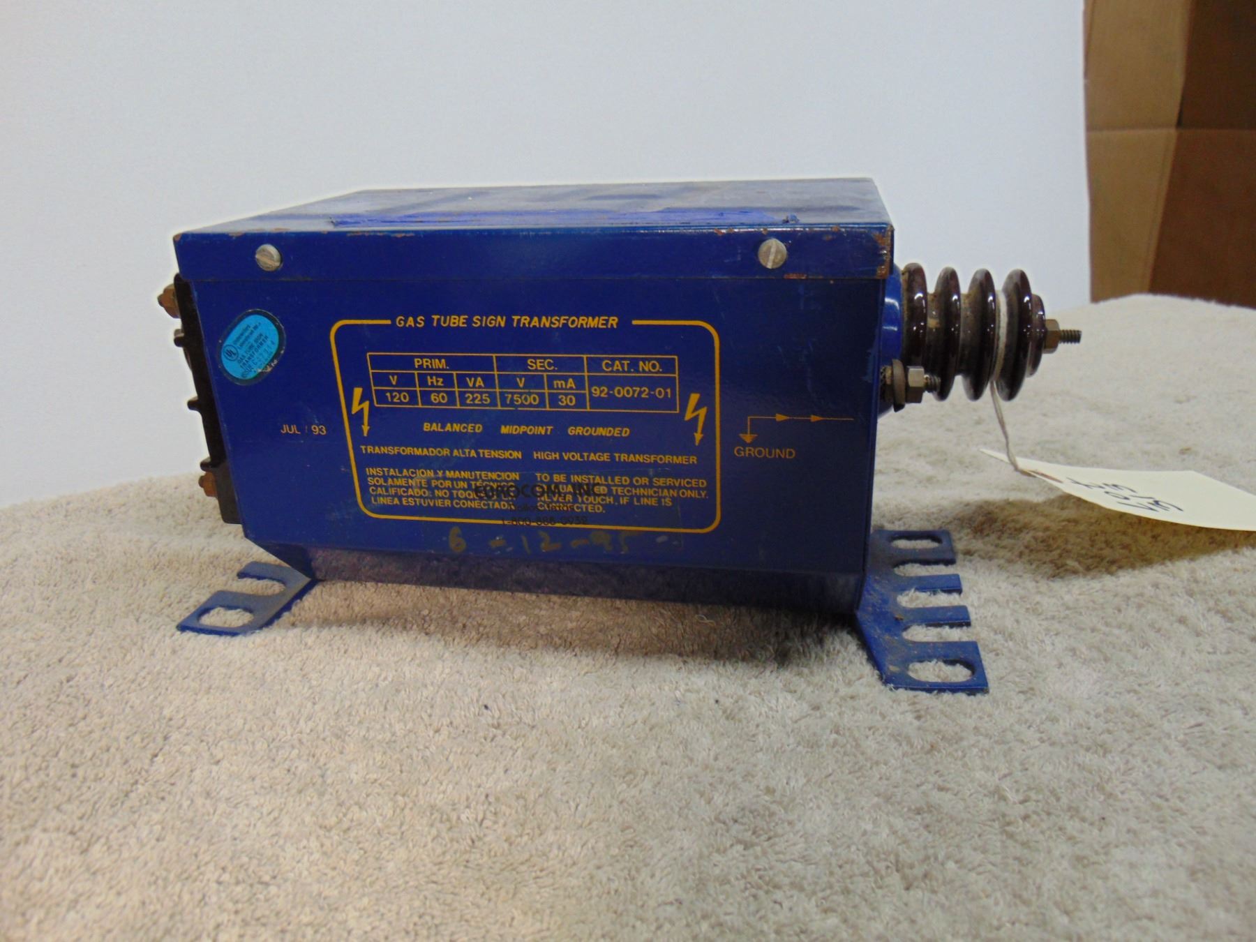 Neon transformer; rated 7500 v.