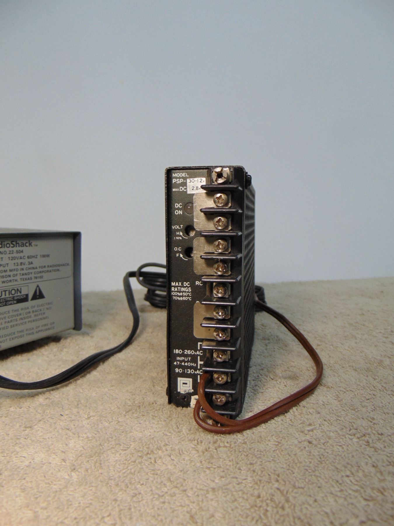 Two power supplies, low voltage: 1) Radio Shack 3 amp, 12 v; 2) unknown make (nice); both work