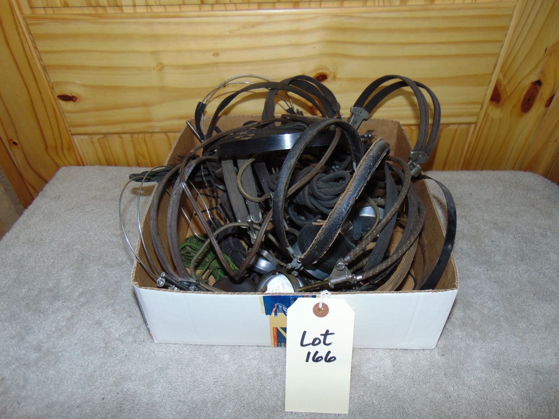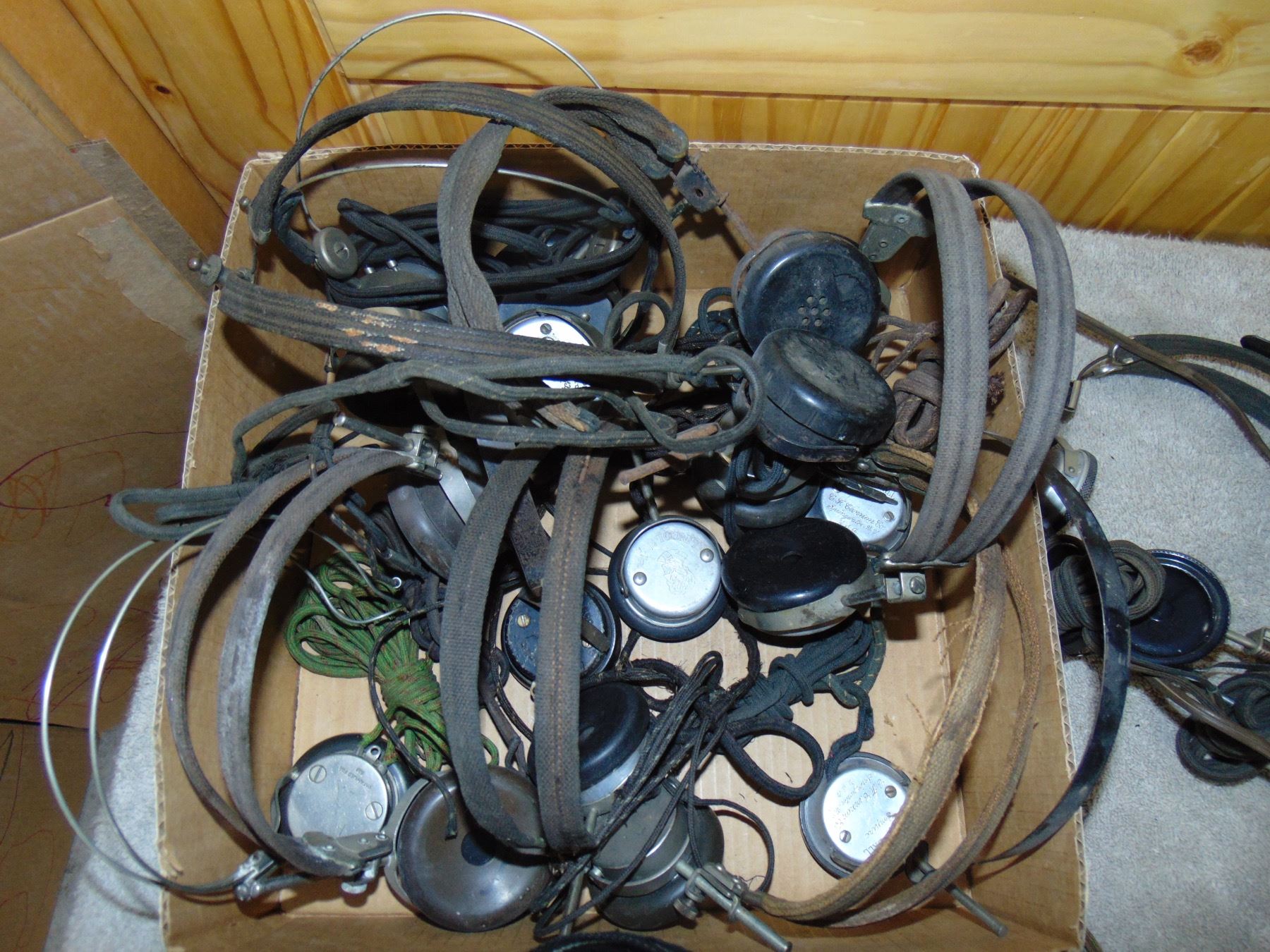Flat of vintage headphones; approx 15; all in nice condition