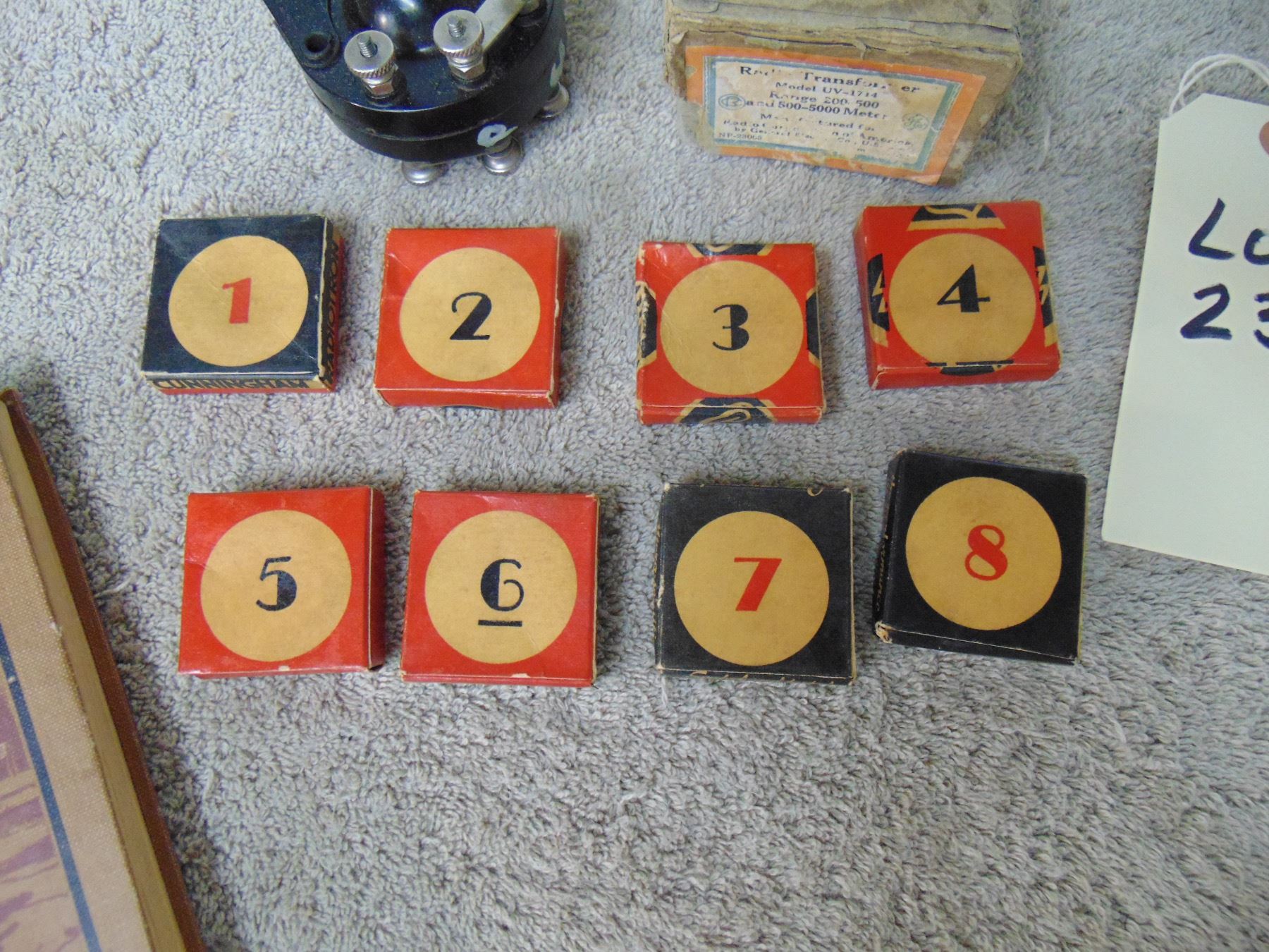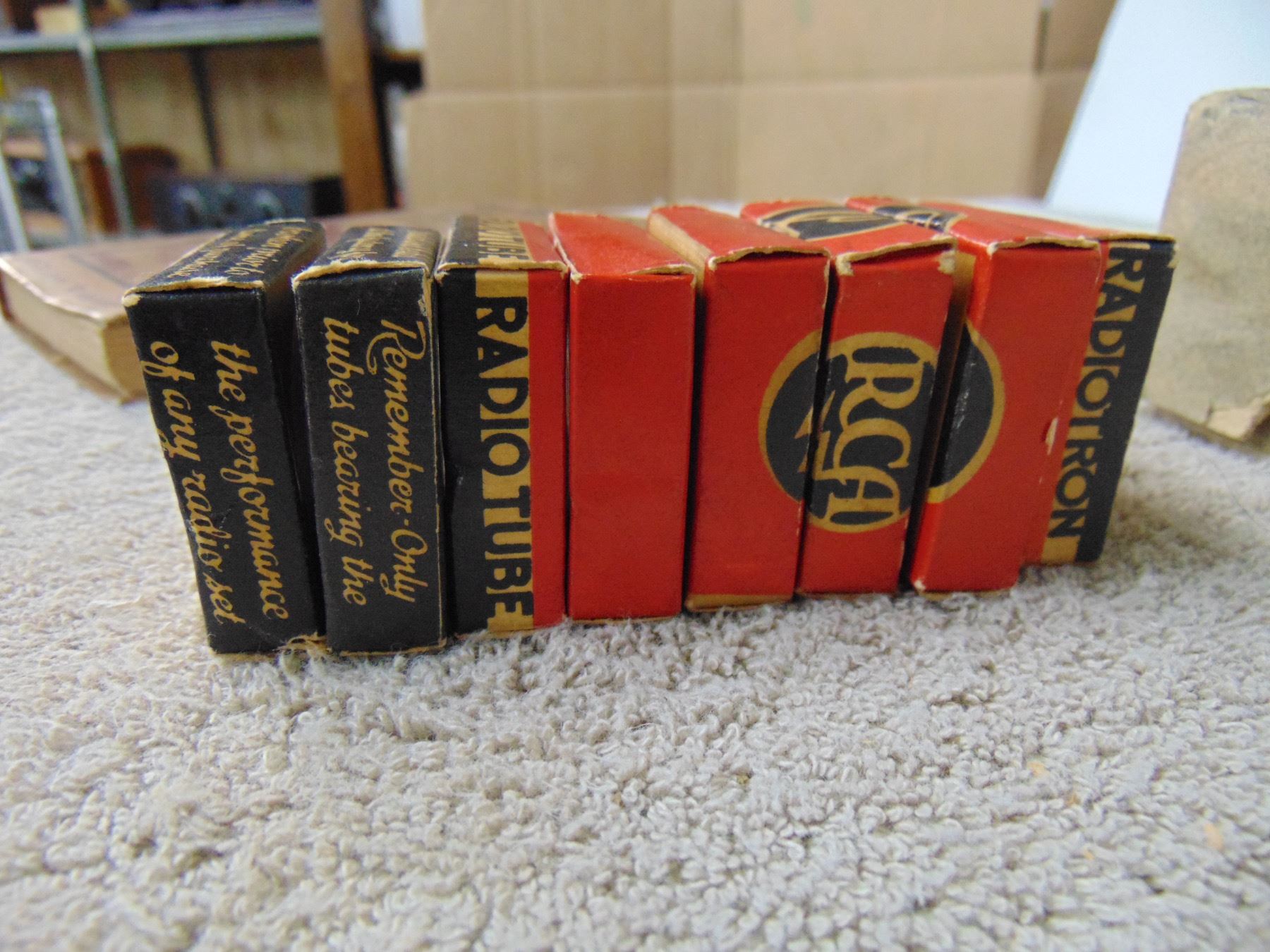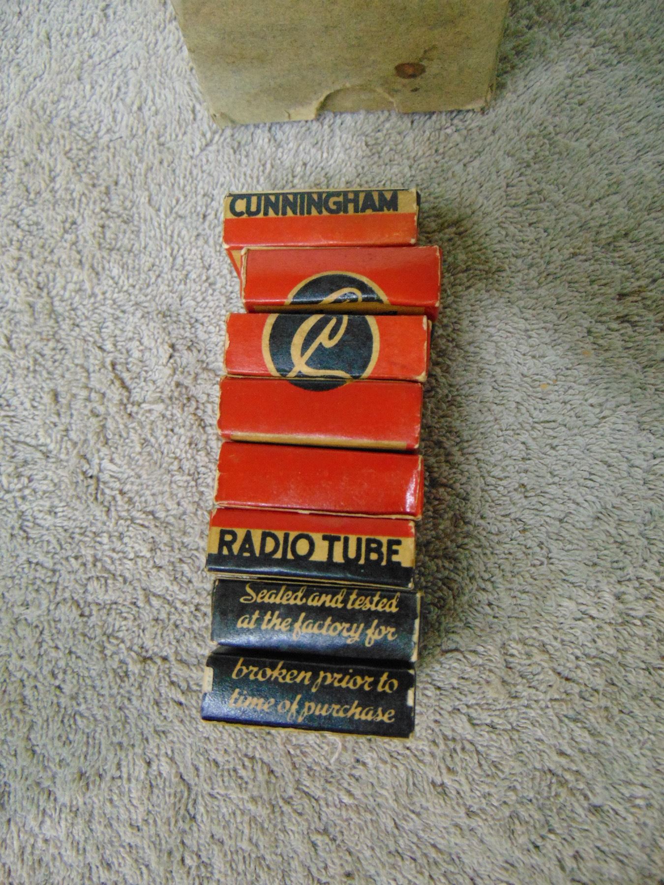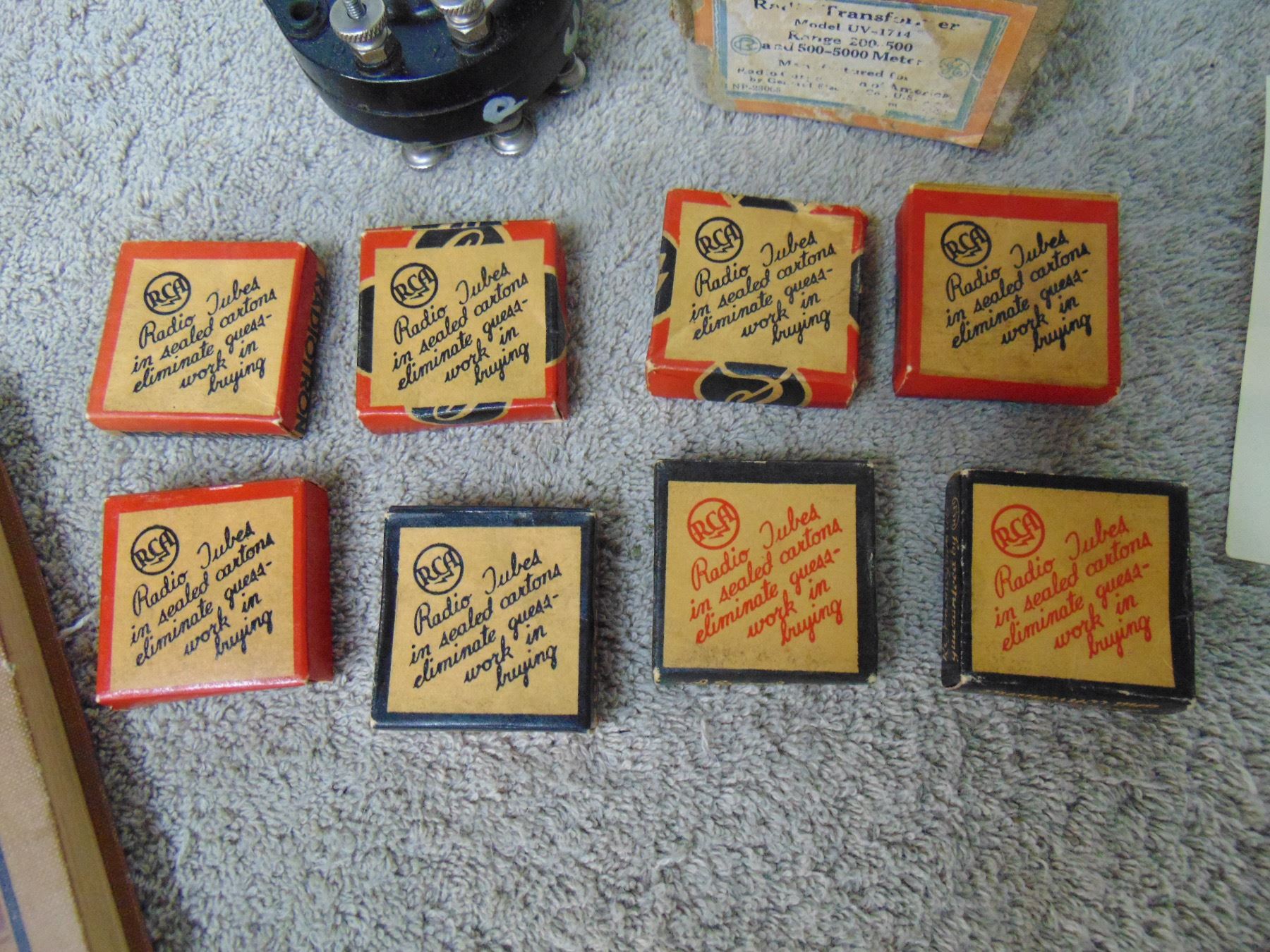 Three items: 1) Tom Turner Radio Adventures juvenile book; 2) RCA radio transformer, model UV-1714 (NIB); 3) Cunningham/RCA tube box puzzle (complete)