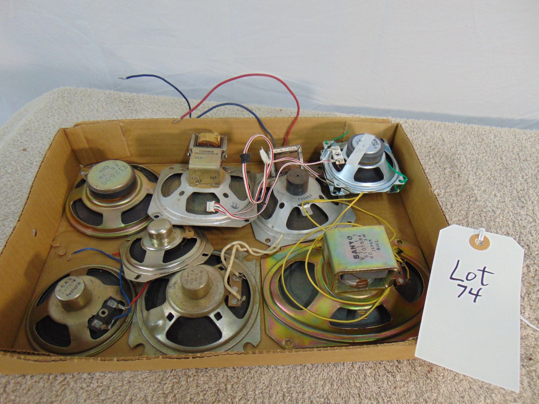 Flat of mostly 4" permanent magnet speakers; good usable cones