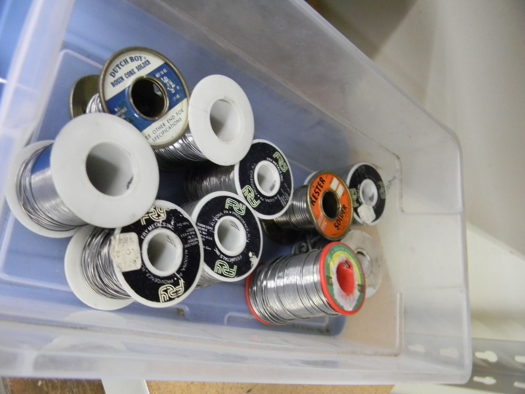Tub of 10 rolls of solder; most rolls are of popular 63/37 small size solder