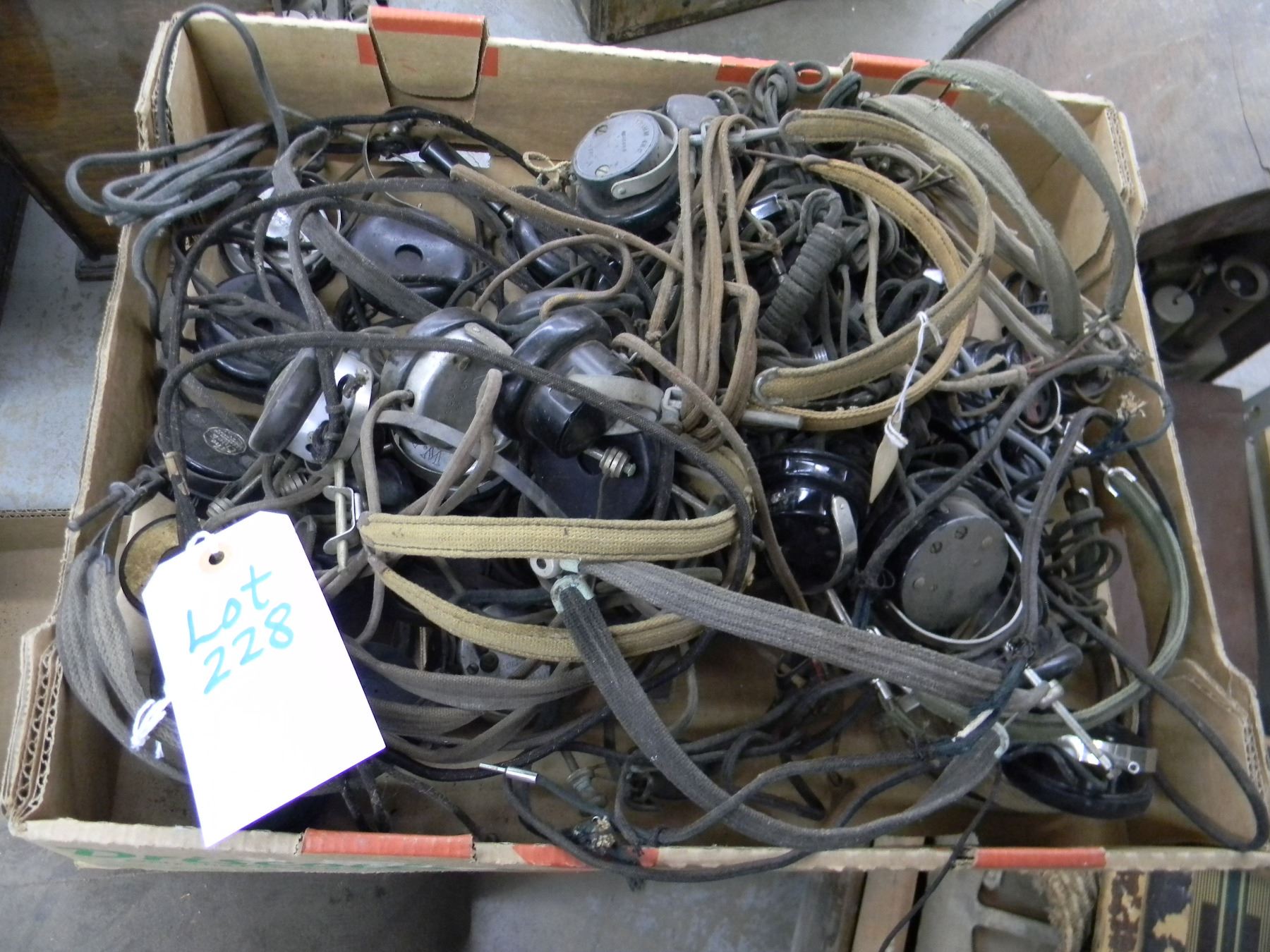 large flat of headphones
