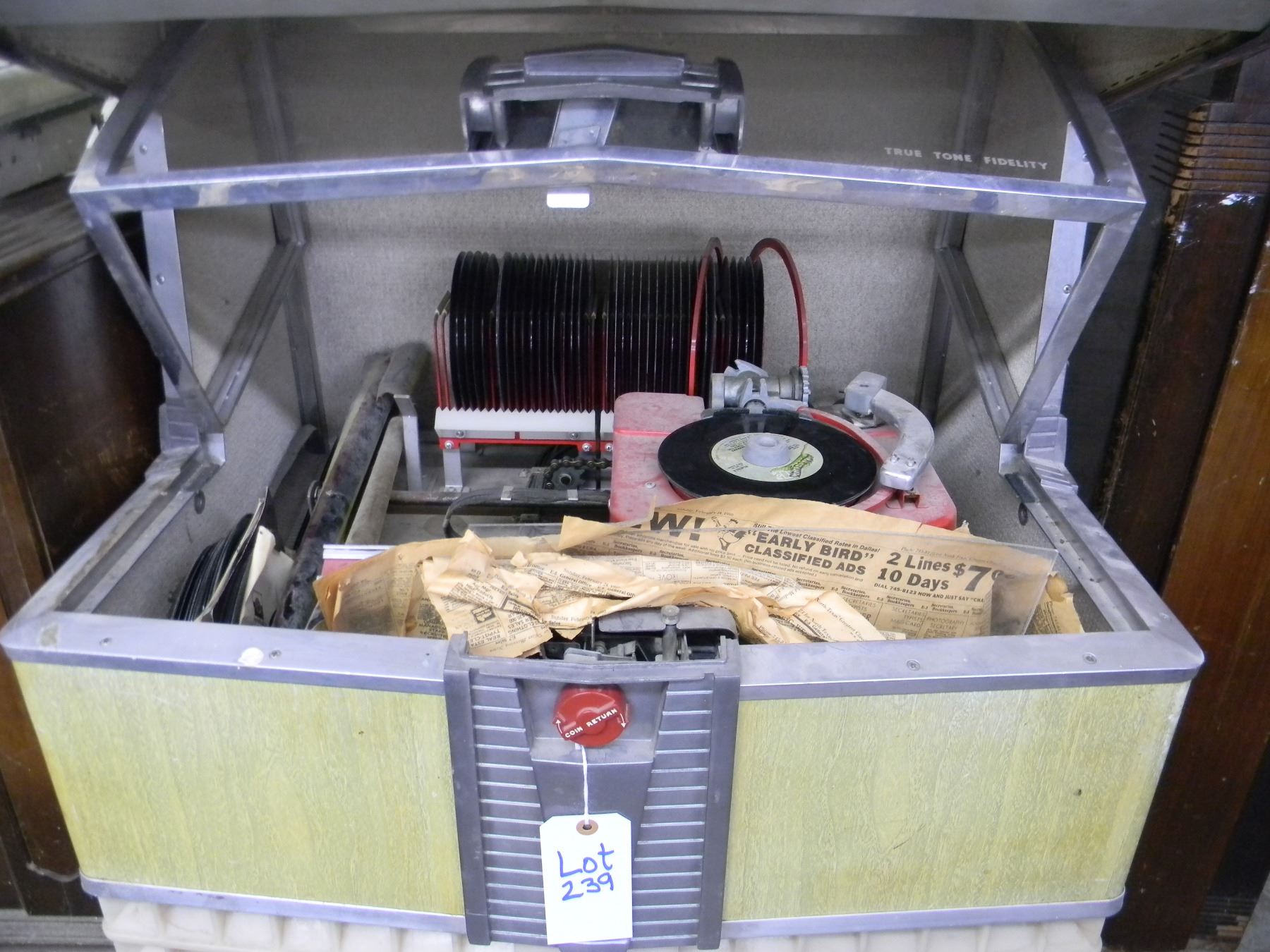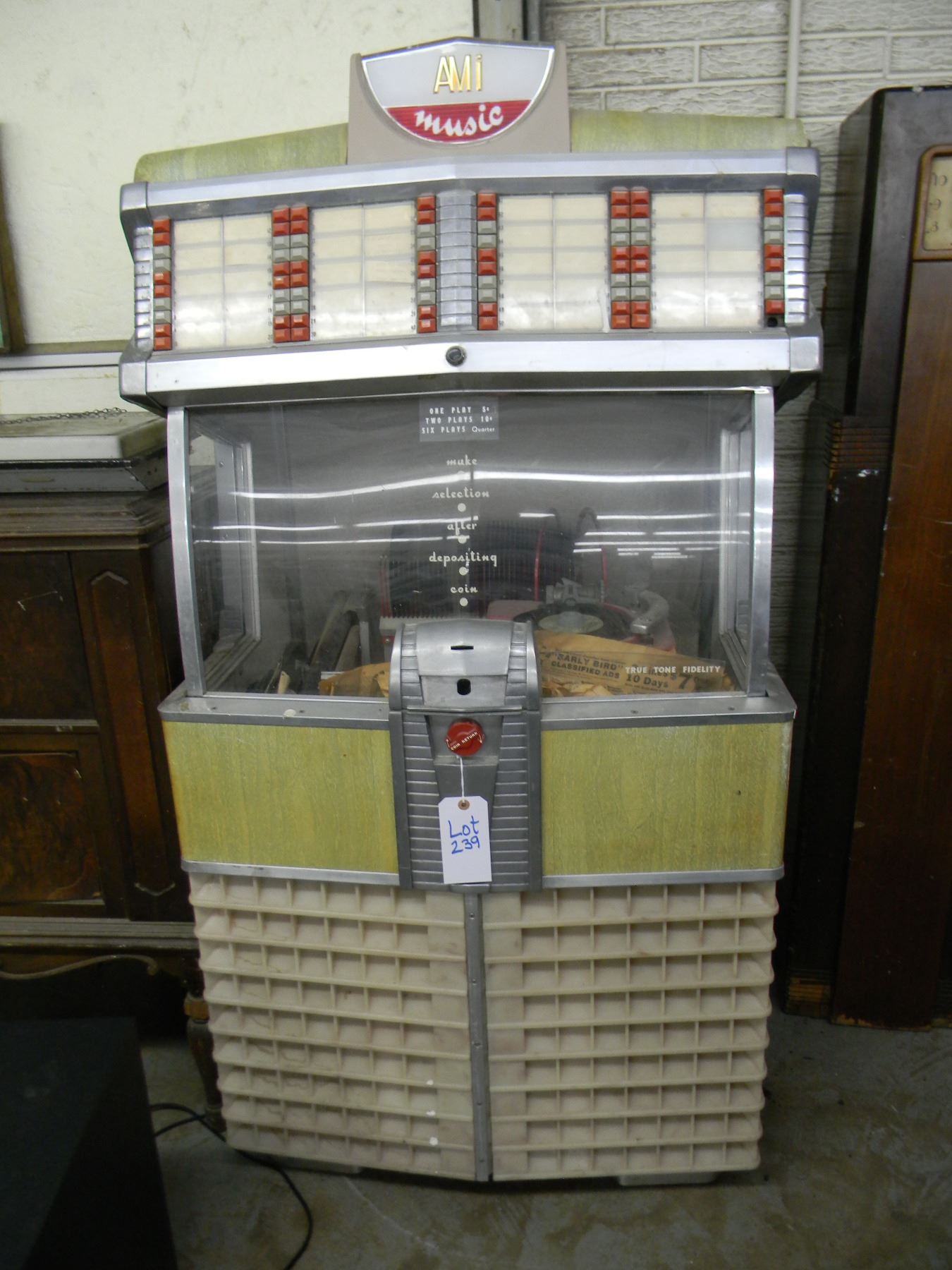 AMI juke box model 700; needs restoration, but appears complete with records; great man cave restoration project; lots of 45 rpm records included.