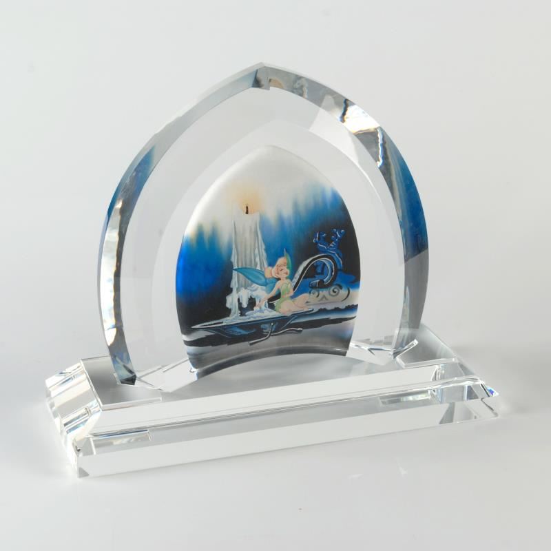 "Mischievous" is a rare (circa 2007) limited edition glass sculpture based on an original painting by Jim Salvati. This piece is hand cut and shaped out of optical crystal glass. The center of this piece is bored out from the bottom and hand painted from the inside using a tiny specialized brush. This piece is numbered with Disney Certificate of Authenticity. Includes original box. Measures approx. 8" x 9" x 2" (sculpture); 10" x 4.5" (base). Due to the age of this piece there may be minor flaws that are only noticeable upon close inspection. There may also be wear to the box.