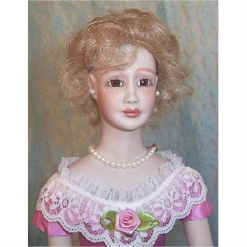 "Miss Dixie" is a collectible porcelain doll that Artist Beulah Markus created especially for the regional doll show held in Memphis, Tn. in 1995. She is sculpted of fine porcelain for her head, , arms and lower legs. Her body is cloth. The dusty rose of her gown highlights her strawberry blond hair. Accessories are elegantly simple- "pearl" necklace and earrings, and evening bag that dangles daintily from her wrist. She has lovely, wide brown eyes. *Excellent Condition. Never had an original box.