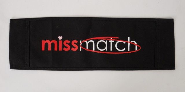 From the 2003 Alicia Silverstone TV comedy "Miss Match", is a very collectable on-set director's chair back with the Miss Match logo. Approx. 6.75" x 22".