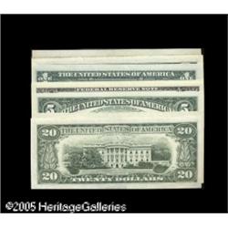 <B>Missing Seal Mania on FRNs,</B></I> including $1 1974 Atlanta <B>Choice CU;</B></I> $1 1981A Dallas<B>Choice CU;</B></I> $1 1988A New York with normal bookend notes <B>Choice CU;</B></I> $5 1977 New York <B>Fine-VF;</B></I> $5 1995 Richmond <B>Choice CU;</B></I> $10 1990 New York <B>AU;</B></I> $20 1985 Boston; $20 1985 New York <B>CU,</B></I> with margin tear. The error notes in this grouping have had printing gone awry during the third pass through the presses.<BR> 10 notes Lot:15143