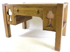oak with single drawer and cut outs on lower book shelves, 29" X 49" X 30". Est. 200-400
