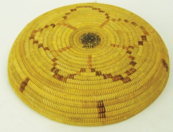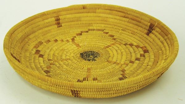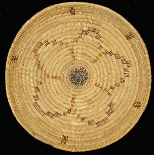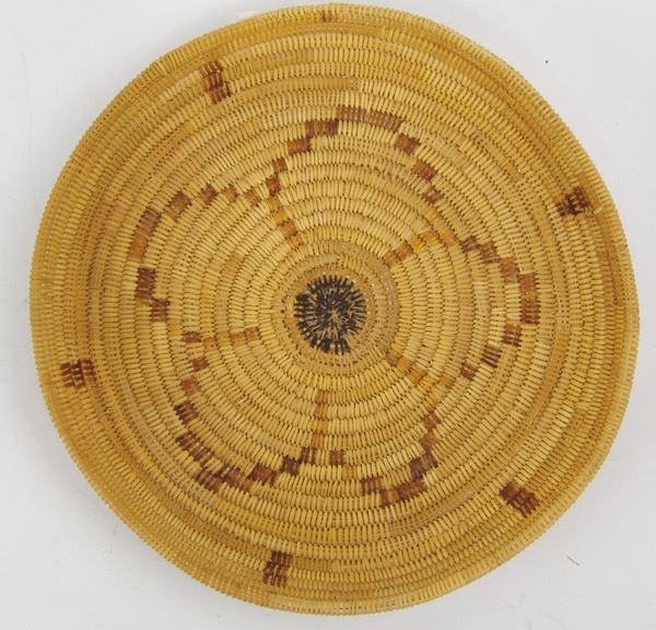 Small, fine weave polychrome plaque with blossom and bar designs. Very good condition. Very minor stitch loss/damage.Ca. 1920s1-3/4" x 8-1/2"