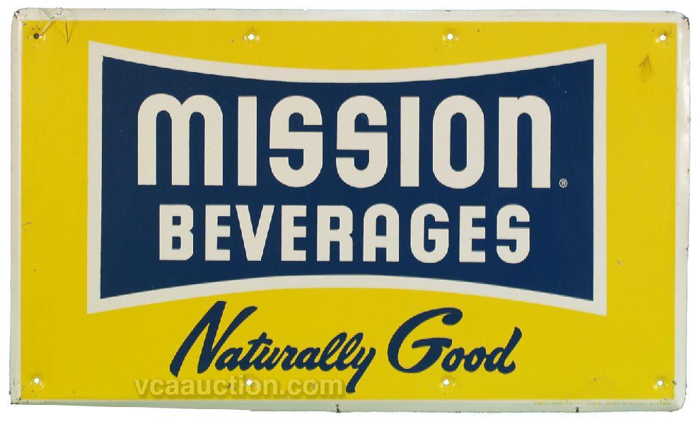 Mission Beverages "Naturally Good" Metal Sign, by Press Sign Co. St. Louis - 23" x 14"