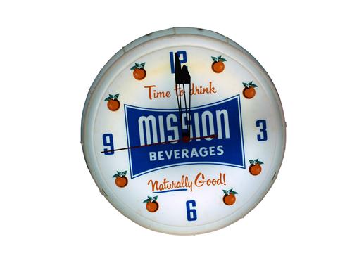 Mission Beverages Round Plastic Light-up Clock "Naturally Good"