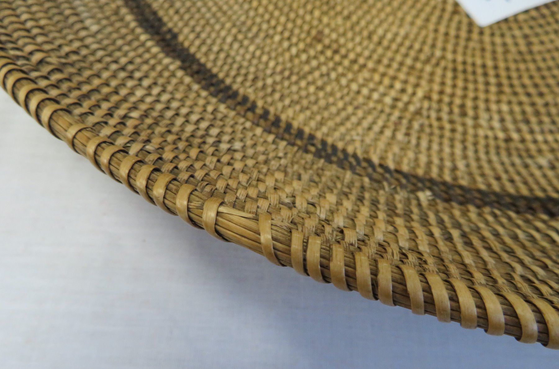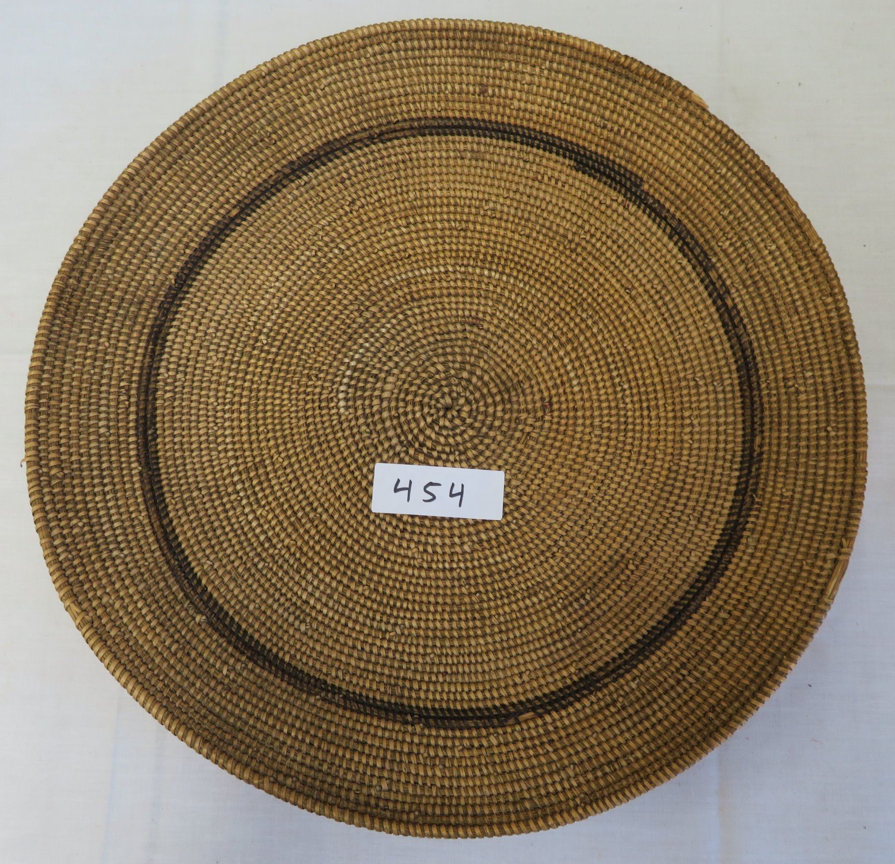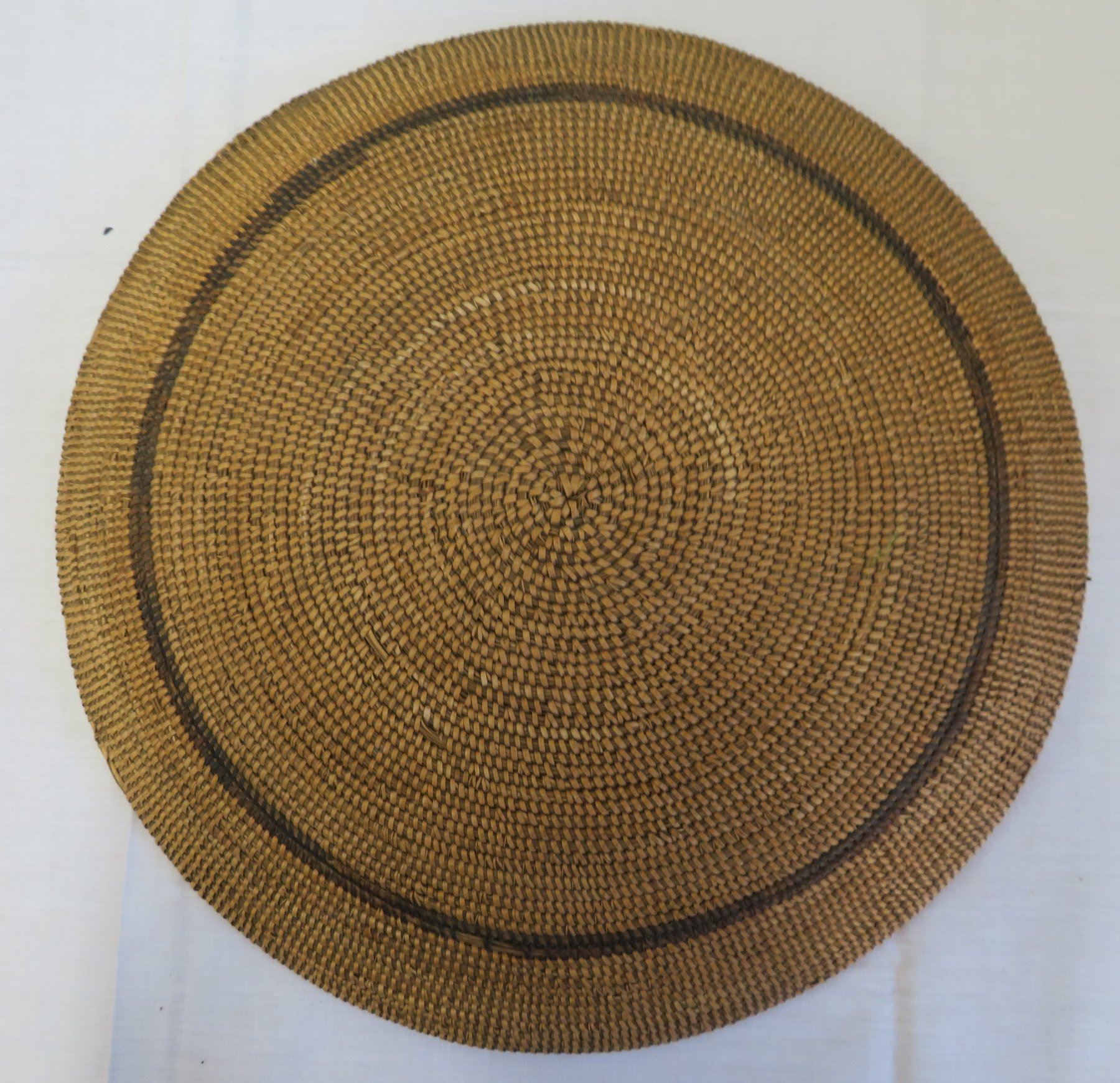 Mission Indian Gambling Tray, c. 1920s. Made of willow and juncus, the item measures 17". Mission Indian, Ramona, San Diego County, California. Condition: Good, some wear, see images. Shipping: $45.00 USA estimate only, w/insurance and signature, due to size and value.