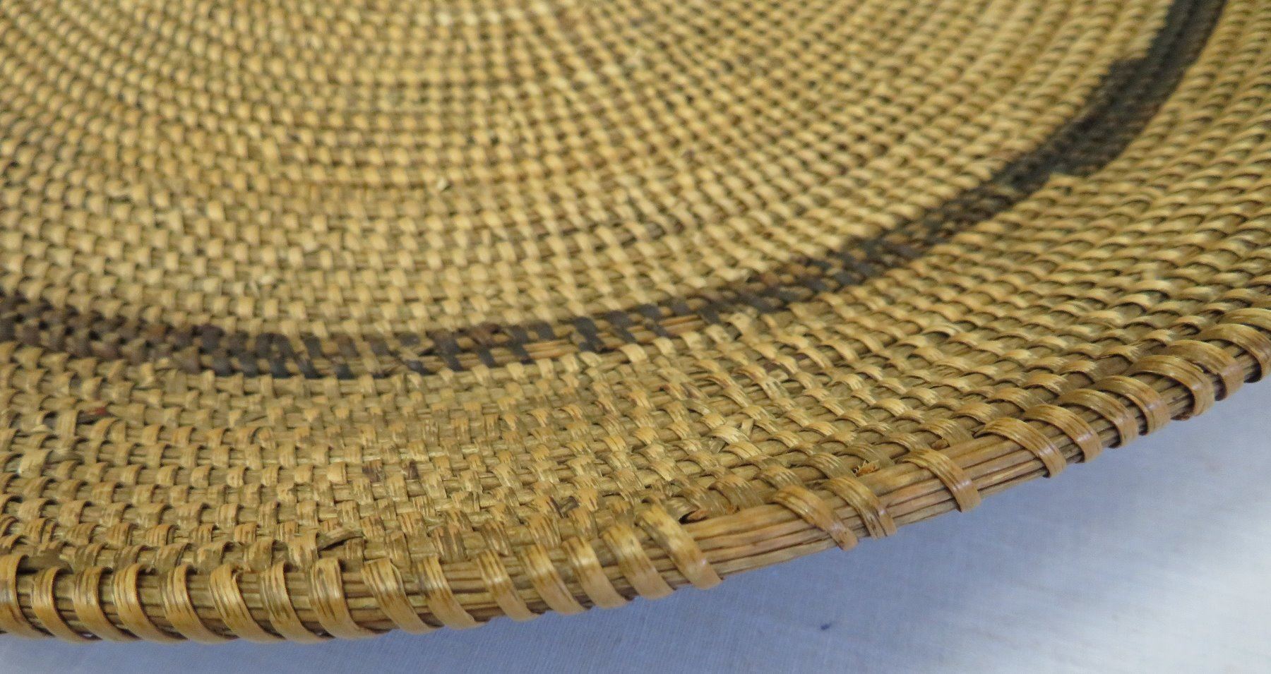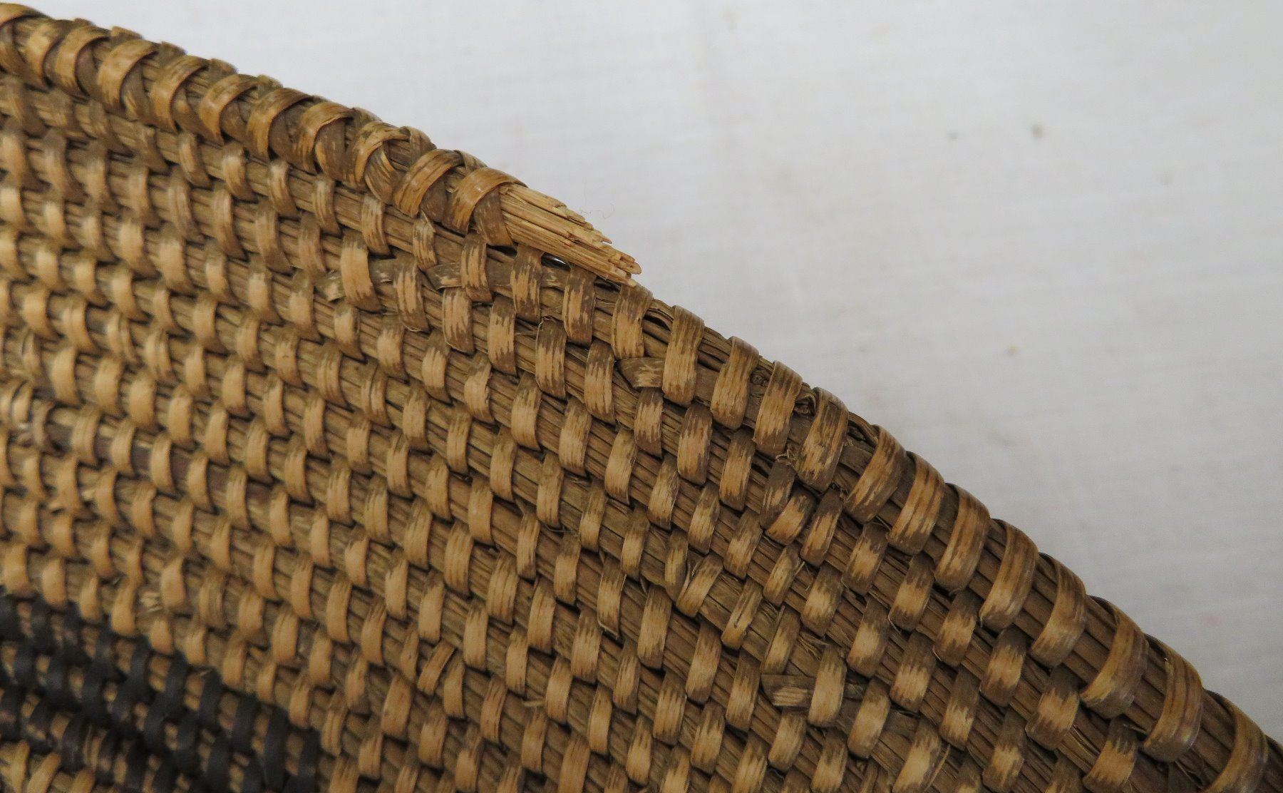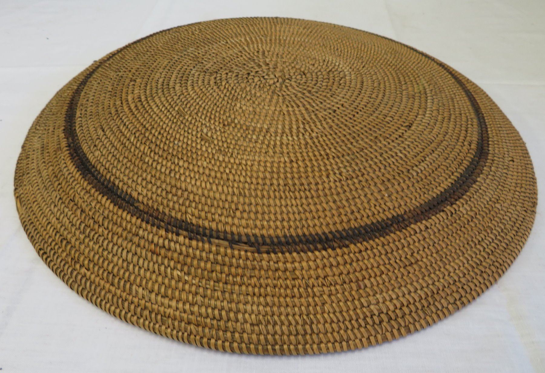 Mission Indian Gambling Tray, c. 1920s. Made of willow and juncus, the item measures 17". Mission Indian, Ramona, San Diego County, California. Condition: Good, some wear, see images. Shipping: $45.00 USA estimate only, w/insurance and signature, due to size and value.