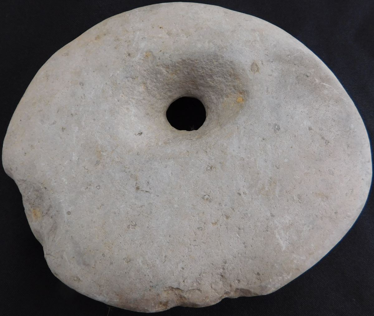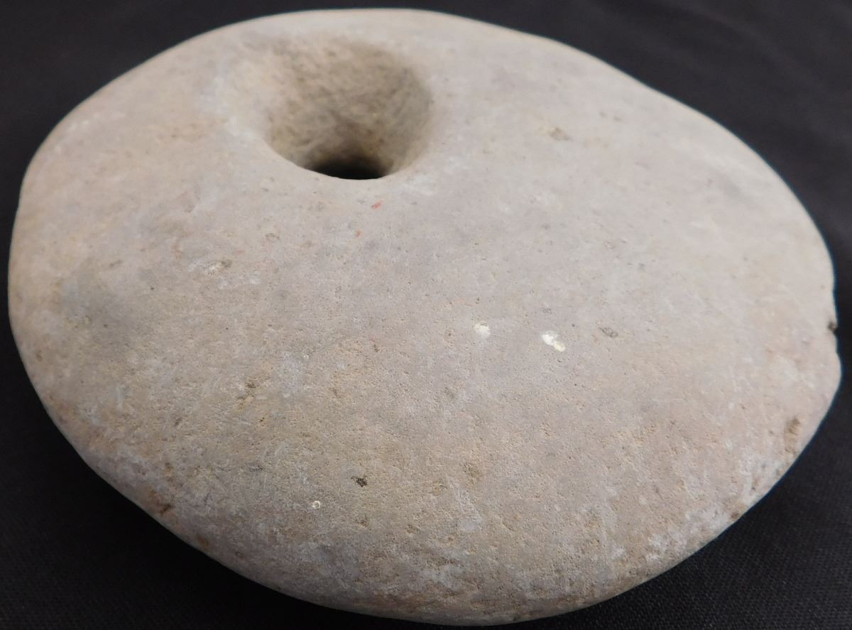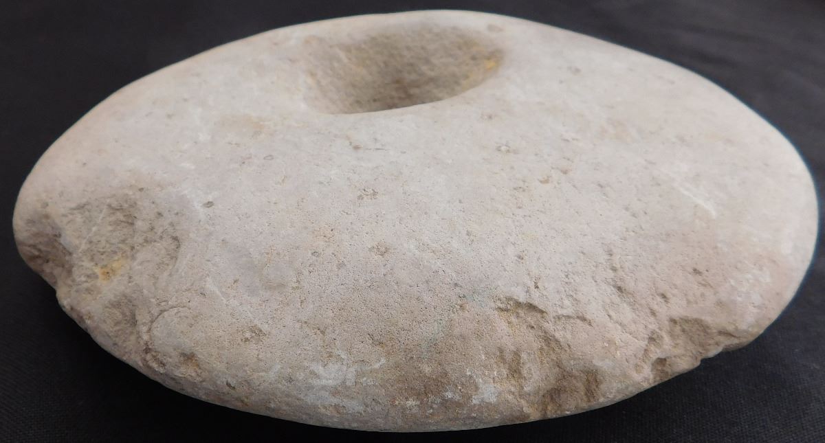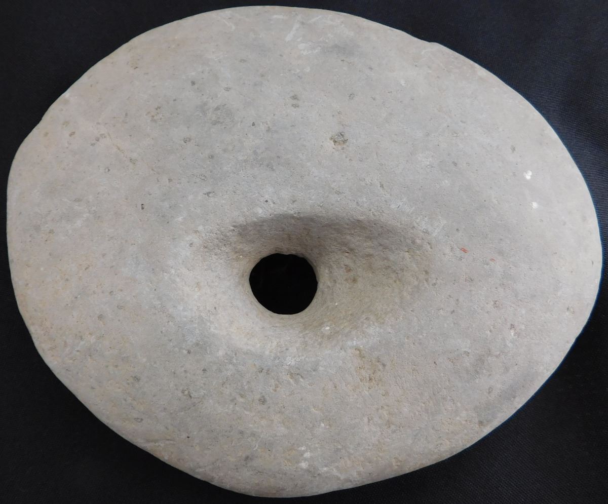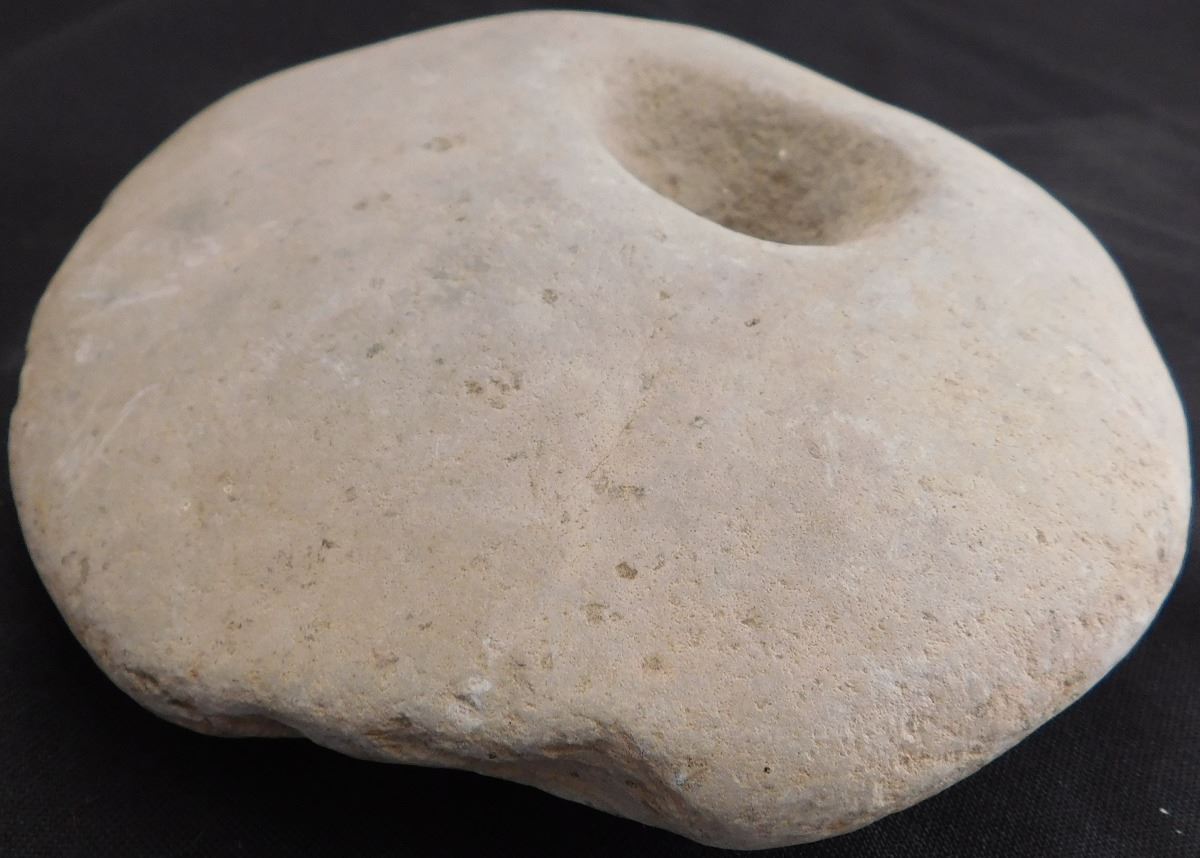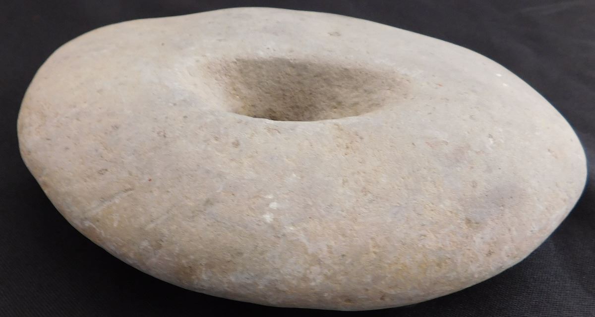Mission Indian Heating Stone, pre-historic item. Made of basalt, item measures 8" x 6.5" x 2". From San Diego County, Mission Indians. Condition: As found, minor nicks, see images. Shipping: $17.50.
