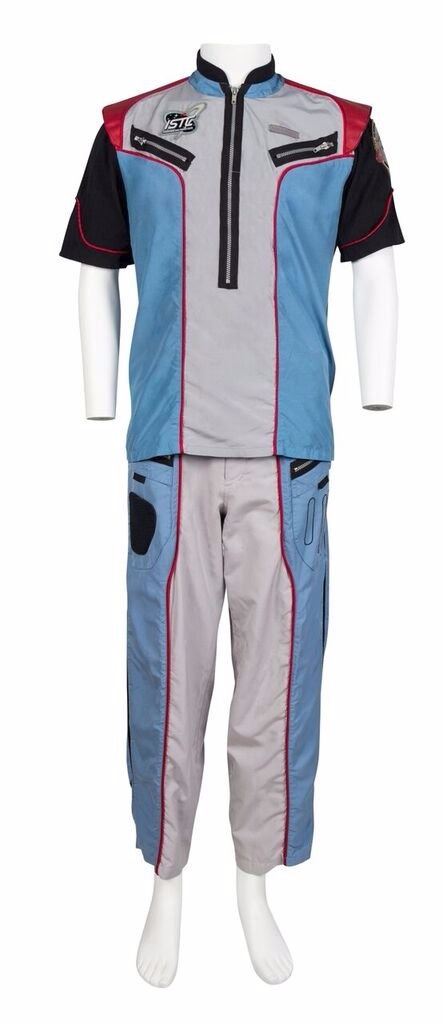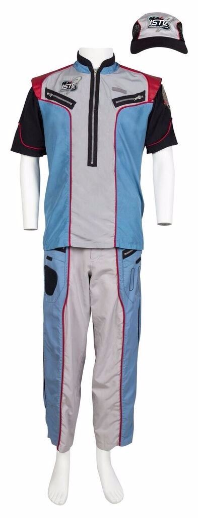 (EPCOT, c.2000s) A scarce original cast member uniform from the "Mission: Space" attraction within the Future World area of the EPCOT Center. This men's uniform includes the hat, shirt, and pants and feature logos for both the International Space Training Center as well as for "Mission: Space". The shirt is size medium while the pants are unmarked for size. This wardrobe is in very good condition with minor wear from use.