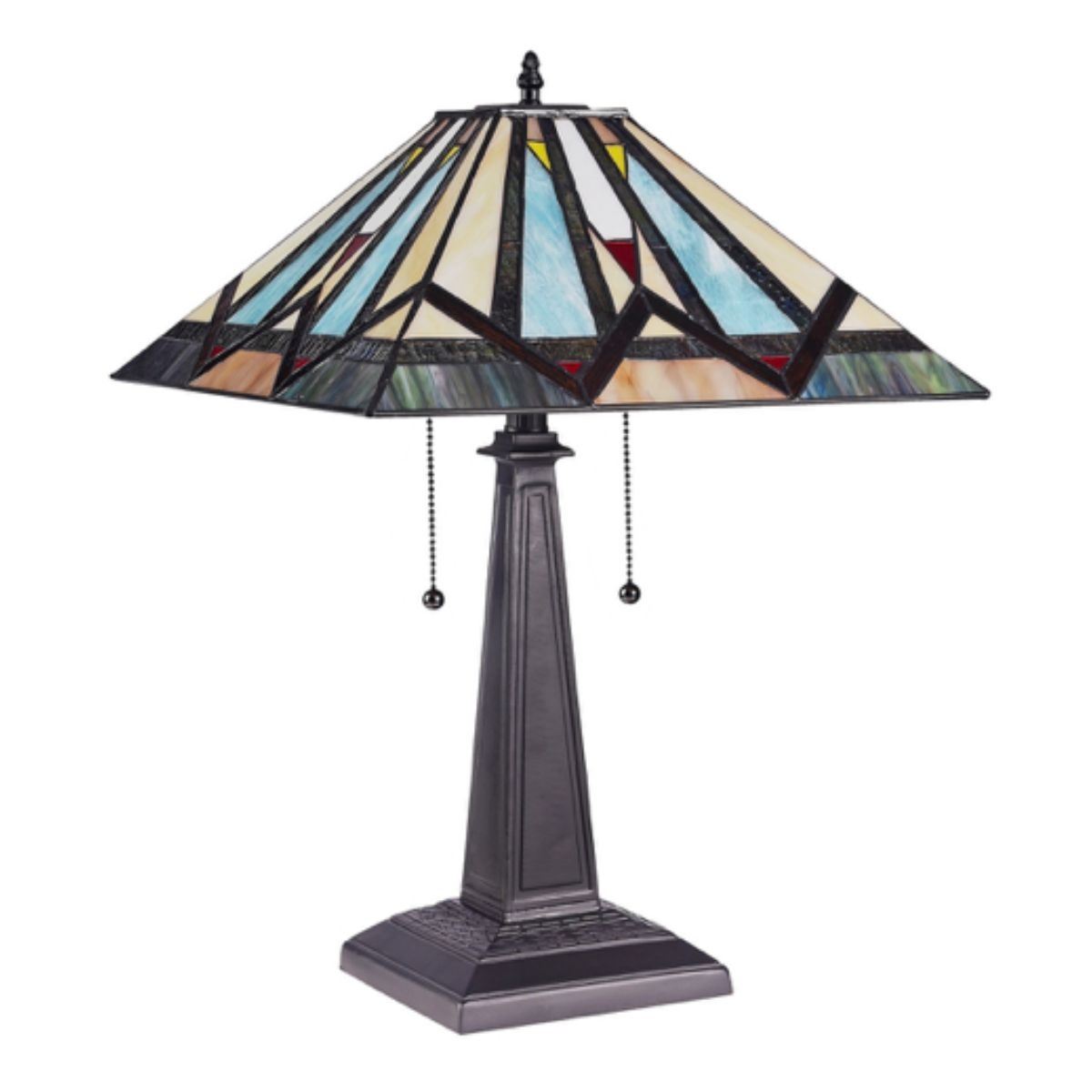 Mission style 2 light stained art glass table lamp, crafted with over 150 pieces of stained art glass, wrapped in copper foil, with bronze finish. 22 1/2" H x 16" W.