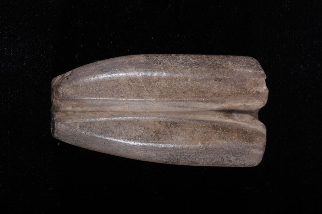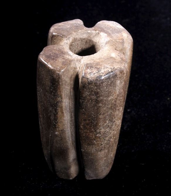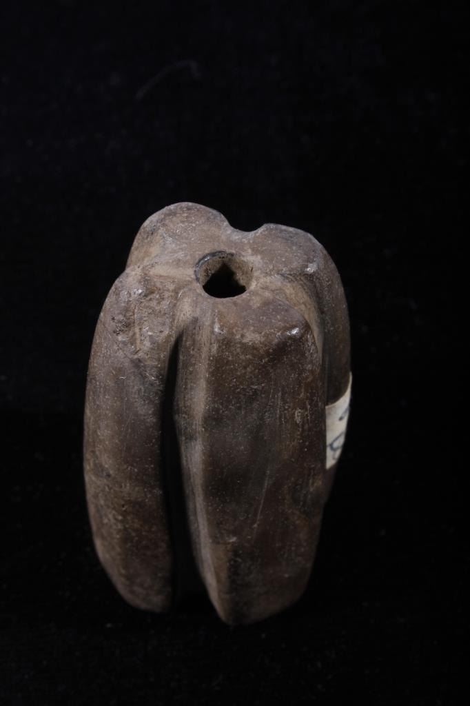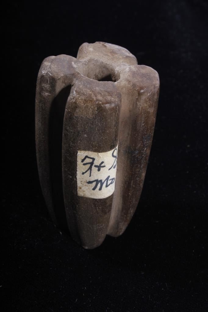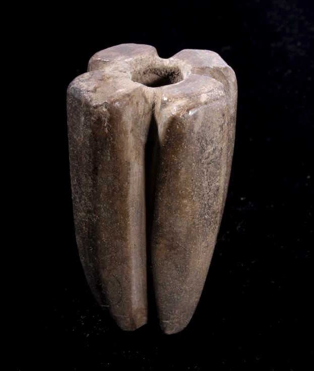 This is an exceptional authentic Mississippian Culture Pre-Historic Native American personal tube pipe with decorative design from circa 600-1200 A.D. The piece comes with a Certificate of Authenticity (COA) from Bannerstone Tom. Provenance: This piece is from the Stoller Collection in Missouri. The piece shows a tulip like pattern with four graduating petal like sections and a thin long bowl. The pipe sows an Indurate Claystone material and overall museum quality condition. Pipe shows a tag. Measures 2.25"L x 1.25"W x 1.25"D.