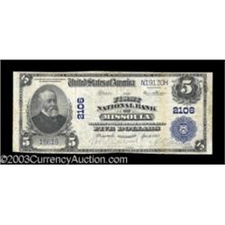 <TABLE cellSpacing=0 cellPadding=0 width="100%" bgColor=#000000 border=0><TBODY> <TR><TD width="100%"><TABLE cellSpacing=1 cellPadding=3 width="100%" border=0><TBODY><TR><TD width="100%" bgColor=#79735c><FONT face=arial color=#ffffff size=3><B>Description</B> </FONT></TD></TR><TR><TD width="100%" bgColor=#ffffff><FONT face=arial size=2><B>Missoula, MT</B></I> - $5 1902 Plain Back Fr. 603 <B>The First NB NB</B></I> Ch. # 2106<BR>An attractive evenly circulated <B>Fine-Very Fine</B></I> with stamped officers' signatures. An example of the second title under which this institution issued. (300-500 ) </FONT></TD></TR></TBODY></TABLE></TD></TR></TBODY></TABLE><BR><TABLE cellSpacing=0 cellPadding=0 width="100%" bgColor=#000000 border=0><TBODY><TR> Important notice: Heritage usually auctions material at the rate of 200-250 lots per hour. On some occasions eBay Live bid software or the Internet may not be able to keep up with the pace of the auction. We recommend placing a realistic absentee bid now as insurance to avoid disappointment. Occasionally the auctioneer may eliminate or reject an eBay Live bid, and the auctioneer may also reopen a lot after the close of the eBay live bidding (usually because we missed an audience bid), and may reject your bid even if it shows you as the winning bidder. By bidding via eBay Live, you agree that Heritage may award the lot to another bidder at its sole discretion under the circumstances described above or any other reasonable circumstances. Also please note that all Heritage lots purchased through eBay Live carry a 20% Buyer's Premium. Please make sure you read the Terms and Conditions before you bid.</TR></TBODY></TABLE>