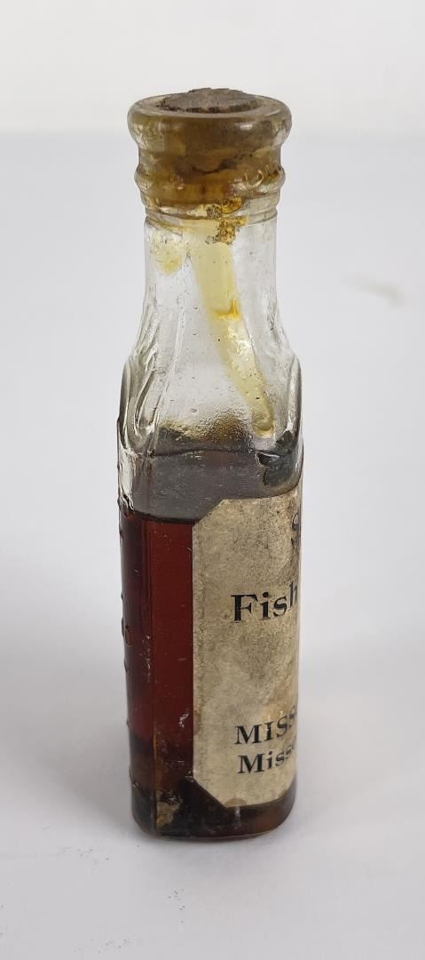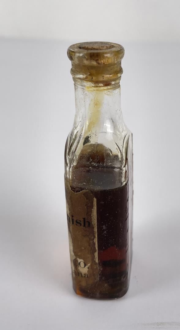 Neat bottle with partial contents.
