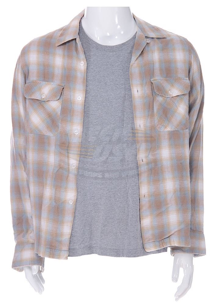 (Dimension Films, 2007) These shirts were acquired by the production for use by Thomas Jane as "David Drayton". One shirt is a size medium long sleeve, button down with two chest pockets. The second shirt is a size medium grey under shirt with "David" written on the inside of the collar. Minor wear from use is present.