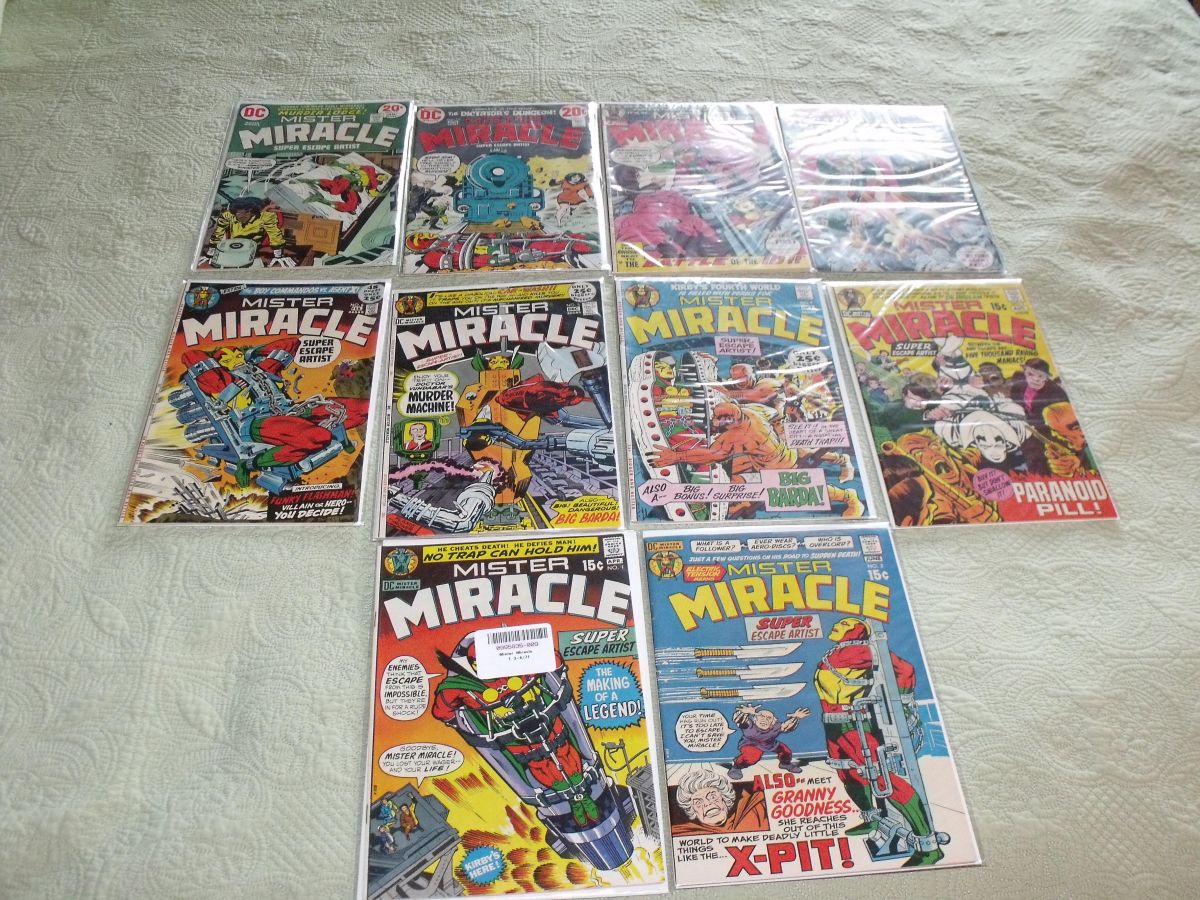 Mister Miracle #1-8, 13, 17. 10 issues total, avg condition ranges from FN+ to VF