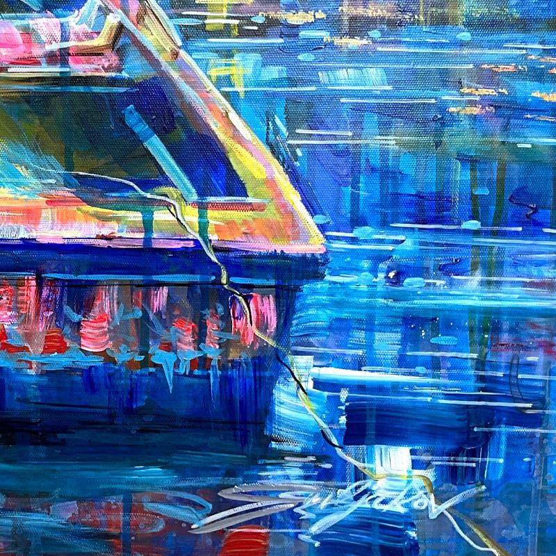 "Mistique Lake" is an original oil painting on stretched canvas by Vadik Suljakov, hand signed by the artist. Includes Letter of Authenticity. Measures approx. 40" x 30" (image).
