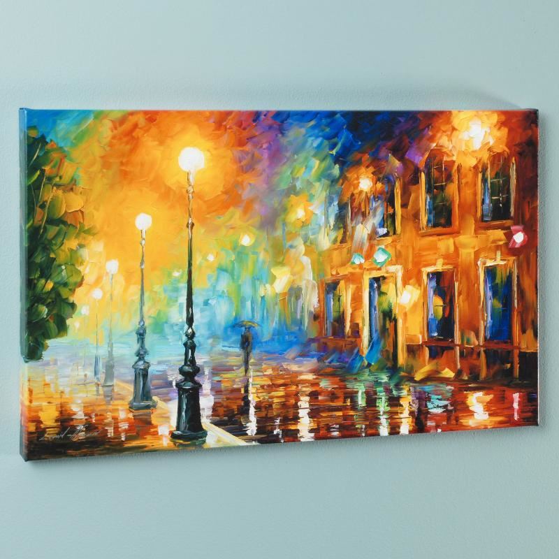 Leonid Afremov's masterful use of color and texture make his paintings unique collectibles that are sure to brighten any wall. "Misty City" is a limited edition giclee on stretched canvas, numbered in verso and bears Afremov's authorized signature. This piece comes gallery wrapped and ready to hang. Includes Certificate of Authenticity! Measures approx. 26" x 16.5" (image).