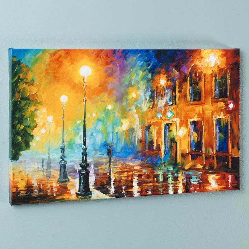Leonid Afremov's masterful use of color and texture make his paintings unique collectibles that are sure to brighten any wall. "Misty City" is a limited edition giclee on stretched canvas, numbered in verso and bears Afremov's authorized signature. This piece comes gallery wrapped and ready to hang. Includes Certificate of Authenticity! Measures approx. 26" x 16.5" (image).