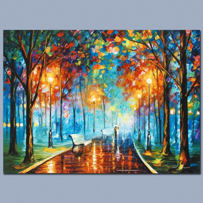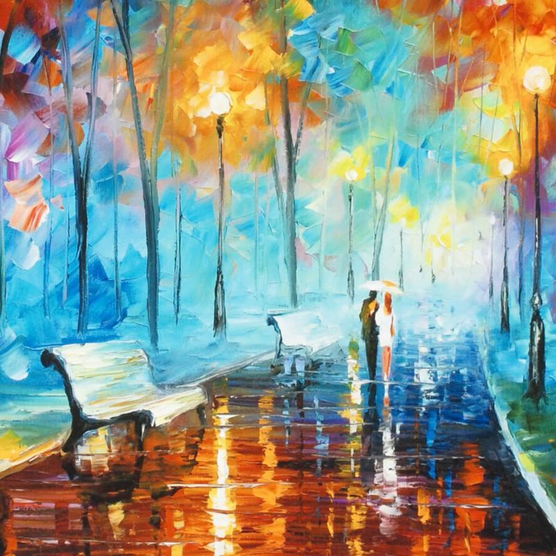 Leonid Afremov's masterful use of color and texture make his paintings unique collectibles that are sure to brighten any wall. "Misty Mood" is a limited edition giclee on stretched canvas, numbered in verso and bears Afremov's authorized signature. This piece comes gallery wrapped and ready to hang. Includes Certificate of Authenticity! Measures approx. 24" x 18" (image).