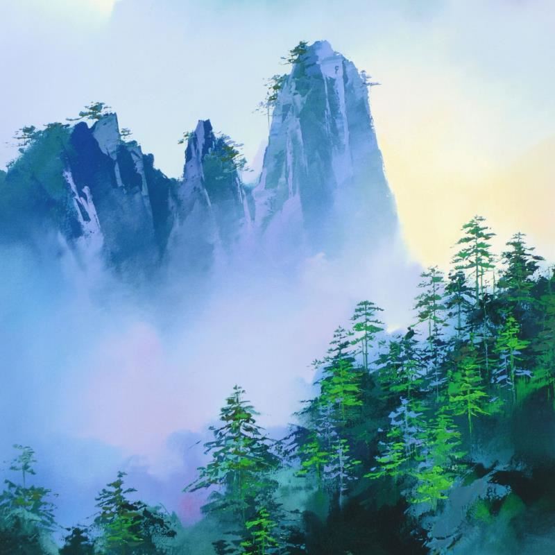 "Misty Mountain Passage" is a hand embellished limited edition giclee on stretched canvas by Thomas Leung, numbered and hand signed by the artist. Includes Letter of Authenticity. Measures approx. 24" x 40" (image).
