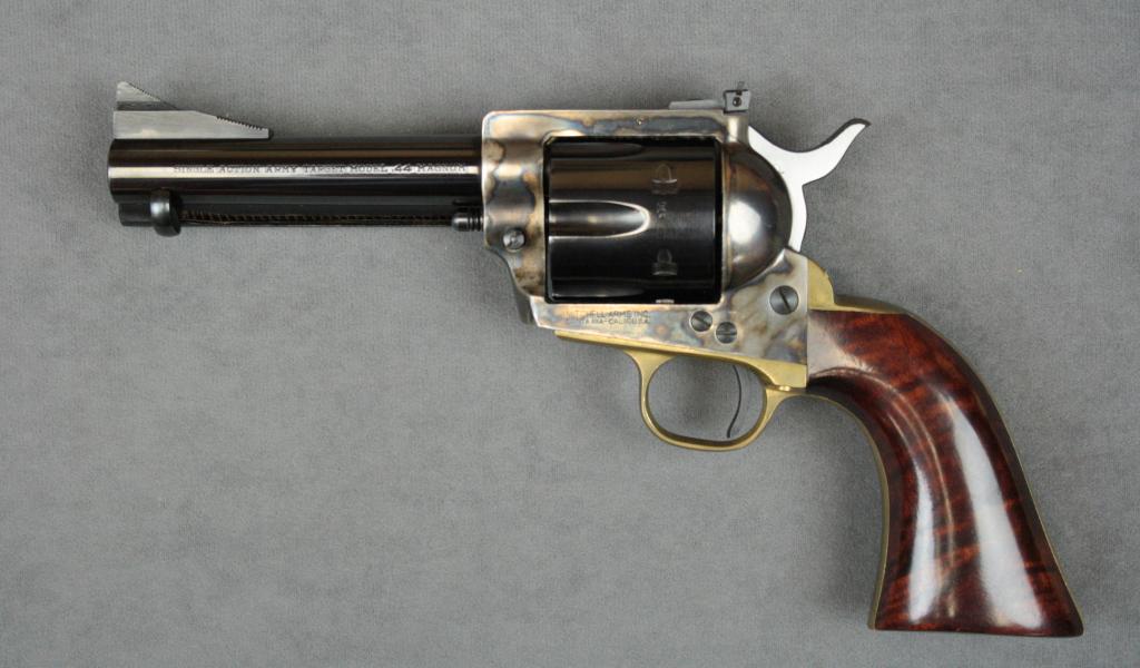 Mitchell Arms copy of a Colt SAA revolver, .44 Mag. cal., 4-3/4” barrel, blue and case hardened finish, wood grips, #280. This gun is in overall excellent condition showing little use; fine bore, action and markings;beautiful grips. Est.: $200-$400.